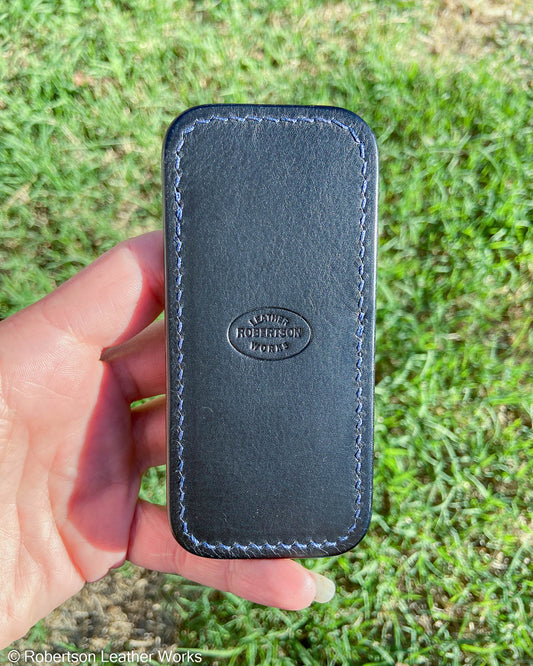 Schmedium Navy Stingray Leather Knife Slip, Black Stitching