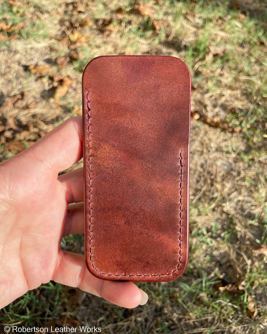 Medium Red-Brown Oil Tan Leather Knife Slip, Maroon Stitching