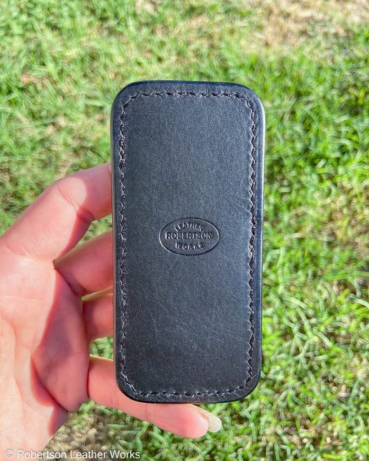 Schmedium Navy Sanded Stingray Leather Knife Slip, Black Stitching
