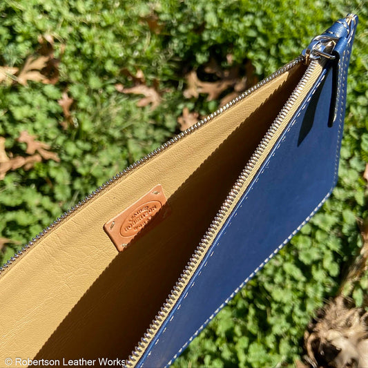Zipper Pouch/ Cash Bag in Blue Ikon Leather