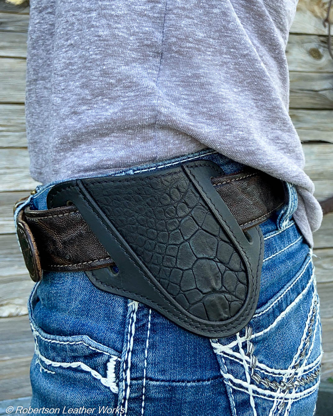 Designed with Balisongs and folding knives in mind, our Folder Holsters combine the functionality of a standard pancake holster with the beauty of exotic leather. These were designed for the longer styles of folding knives and Balisongs, but will also work with smaller knives.