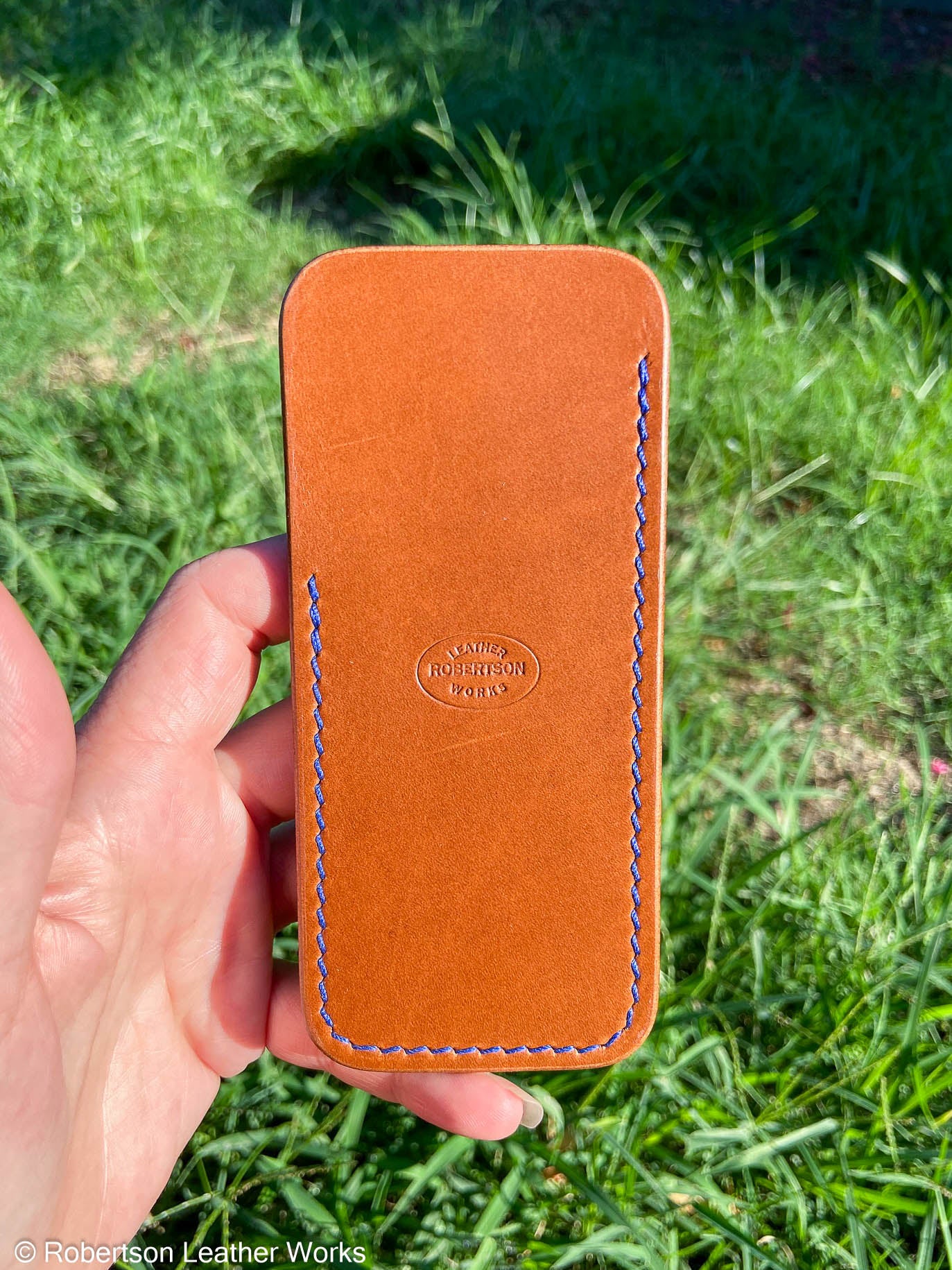 Large Antique Tan Oxford Leather Knife Slip, Blue Stitching