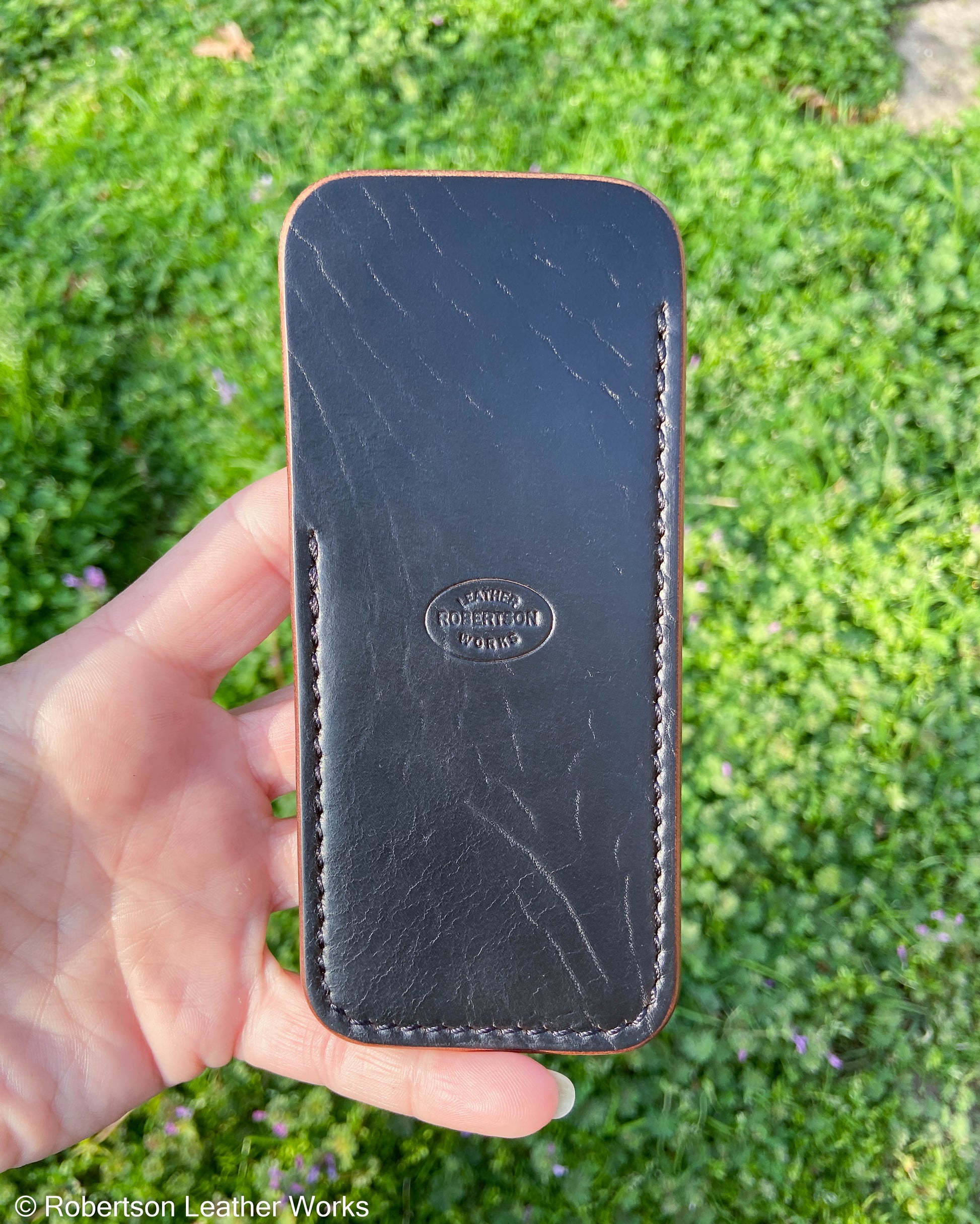 Large Black HBS Leather Knife Slip, Black Stitching 2