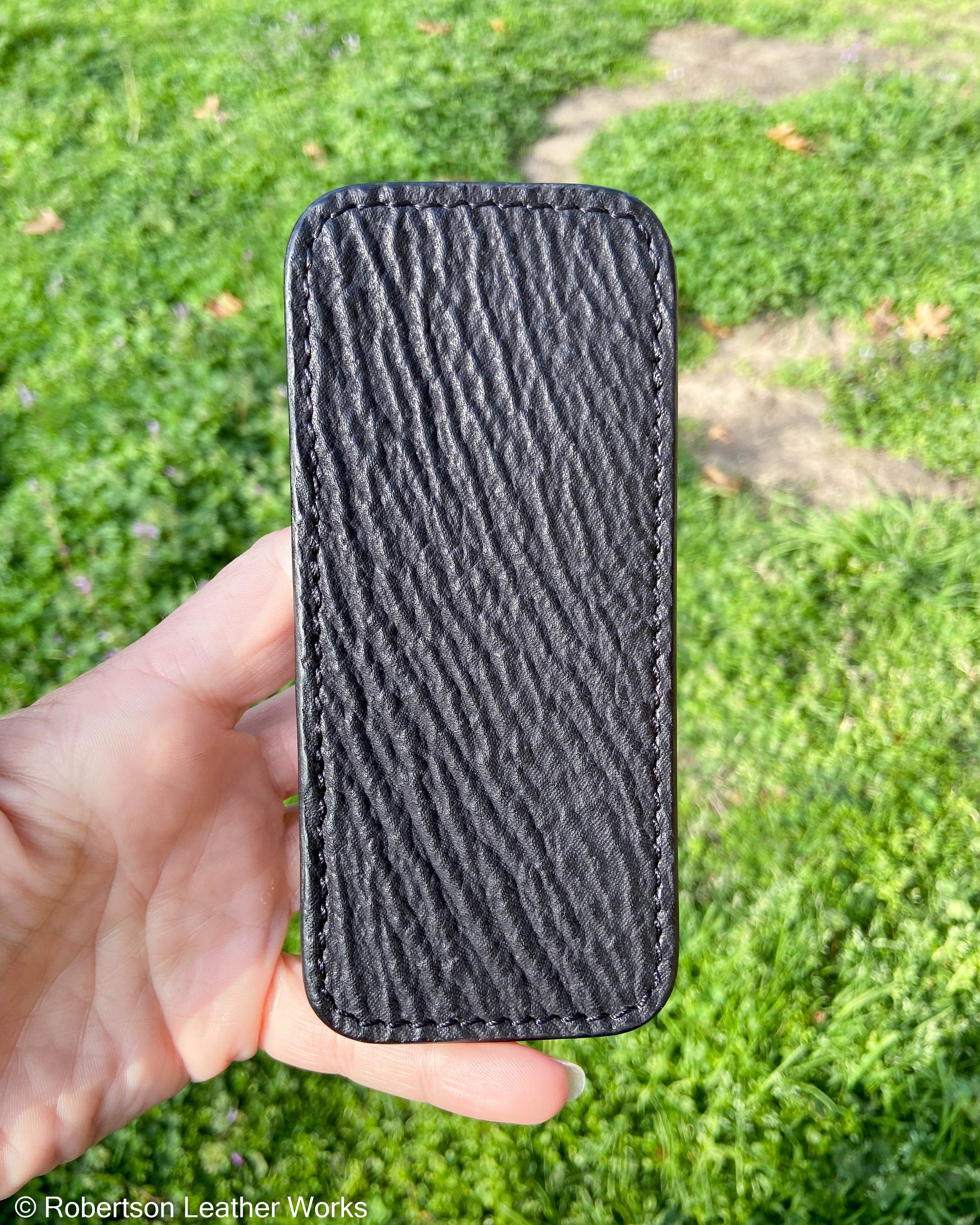 Large Black Shark Leather Knife Slip, Black Stitching
