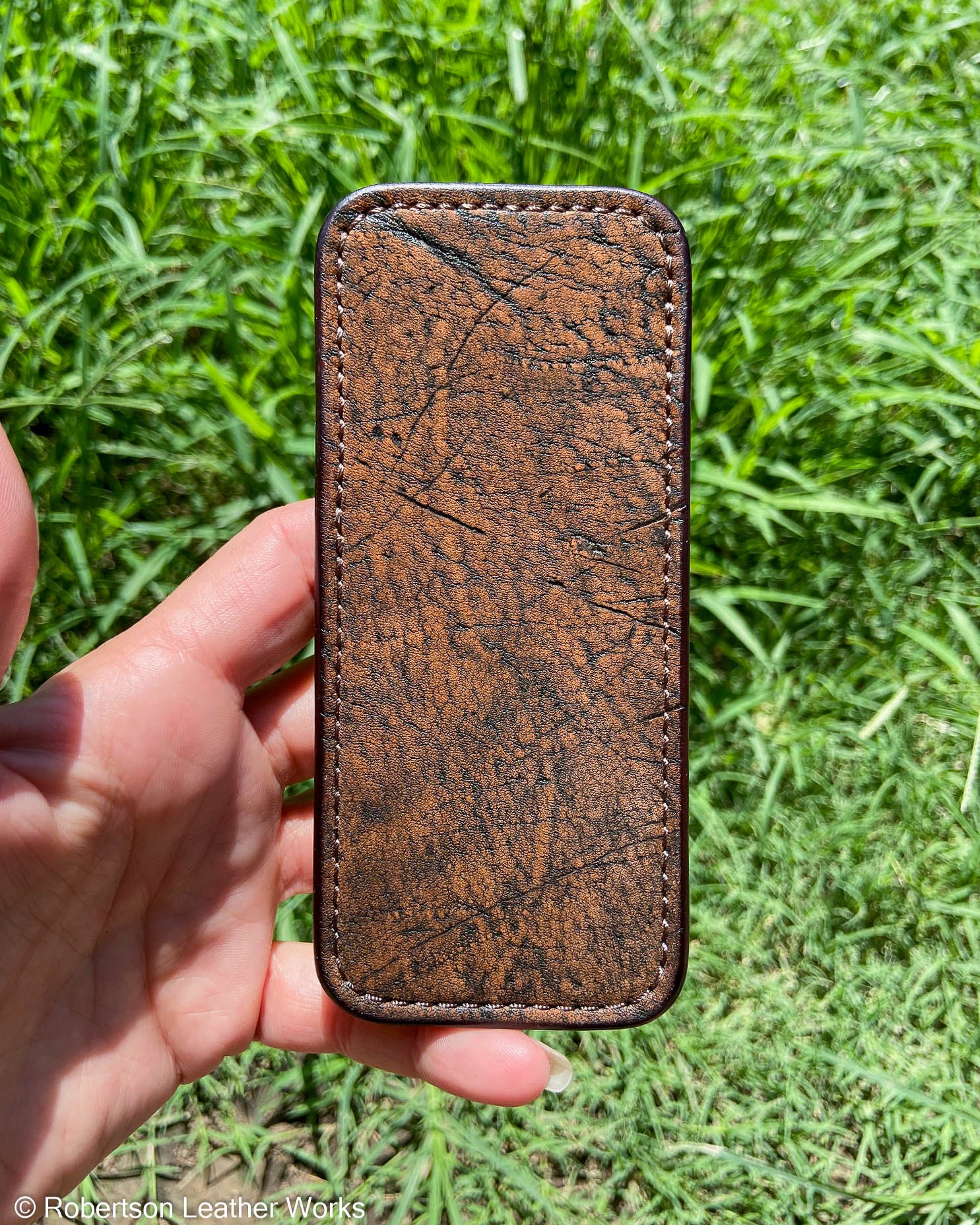 Large Cognac Safari Giraffe Leather Knife Slip, Brown Stitching