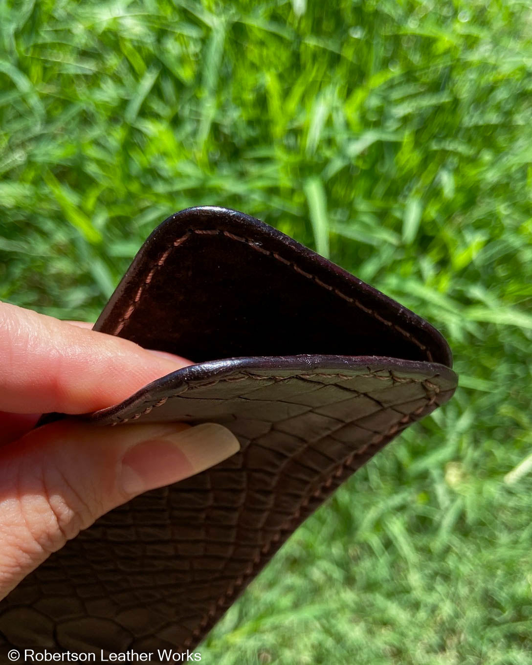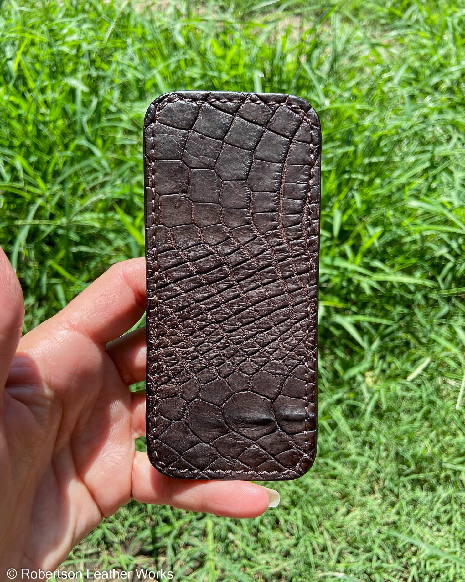 Large Dark Brown Alligator Leather Knife Slip, Brown Stitching