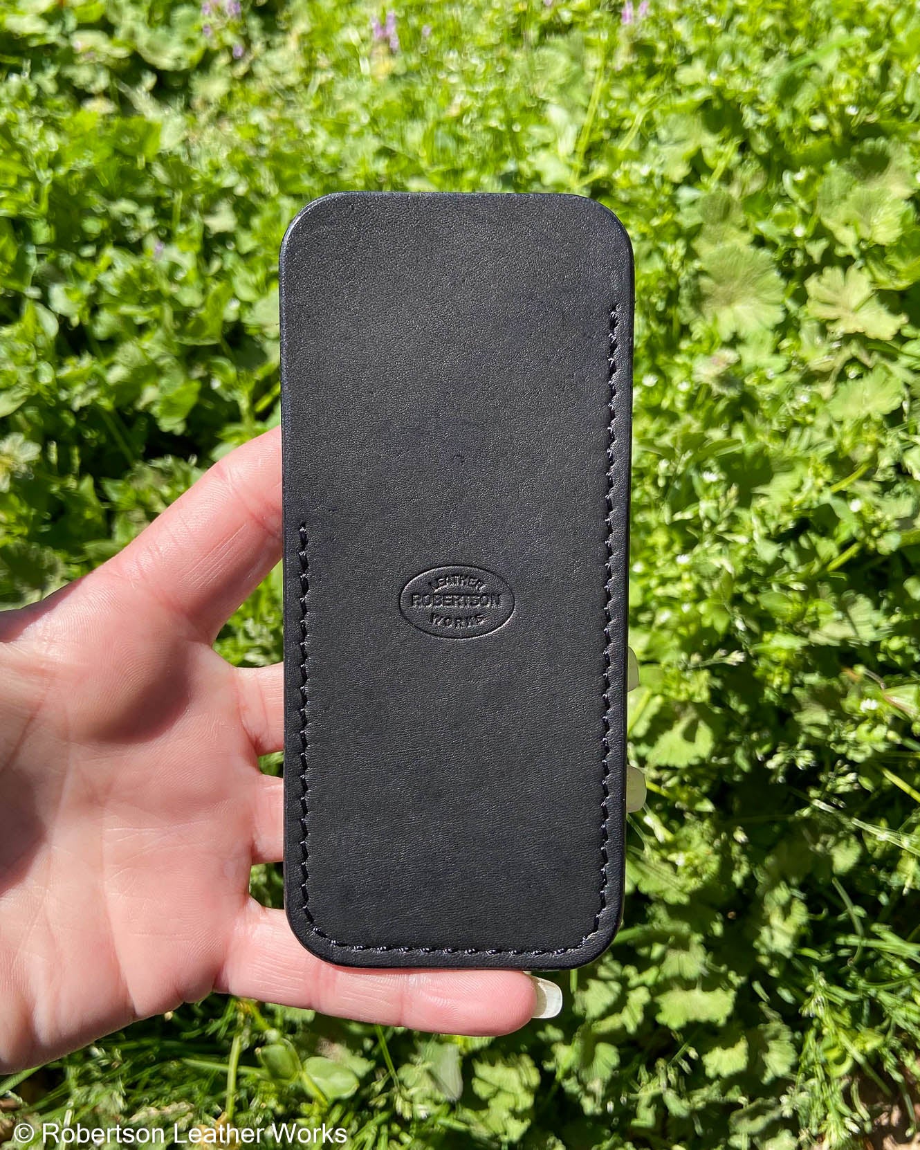 Large Matte Black Oil Tan Leather Knife Slip, Black Stitching