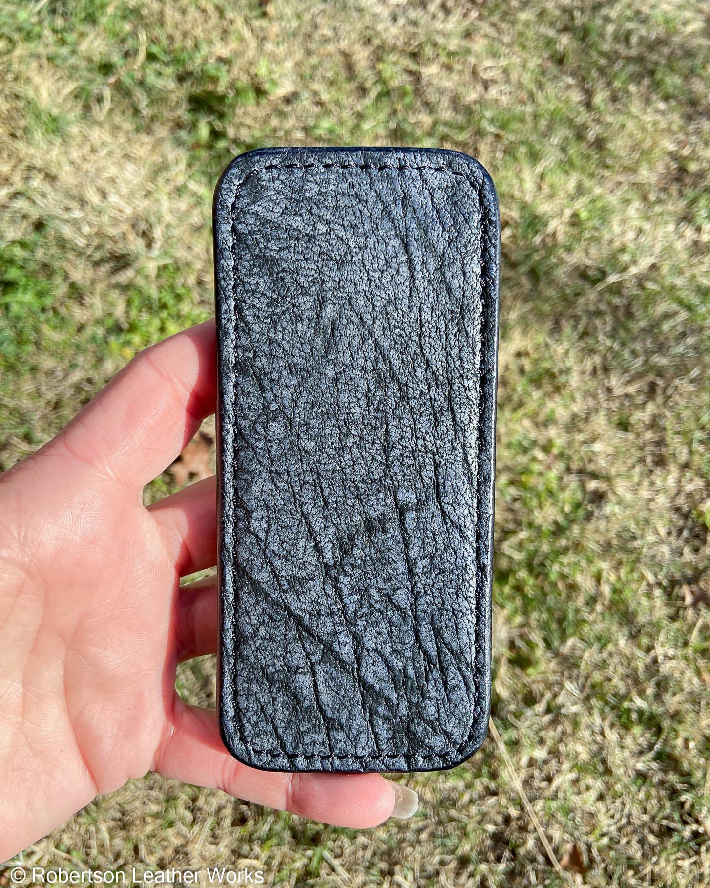 Large Denim Safari Cape Buffalo Leather Knife Slip, Black Stitching