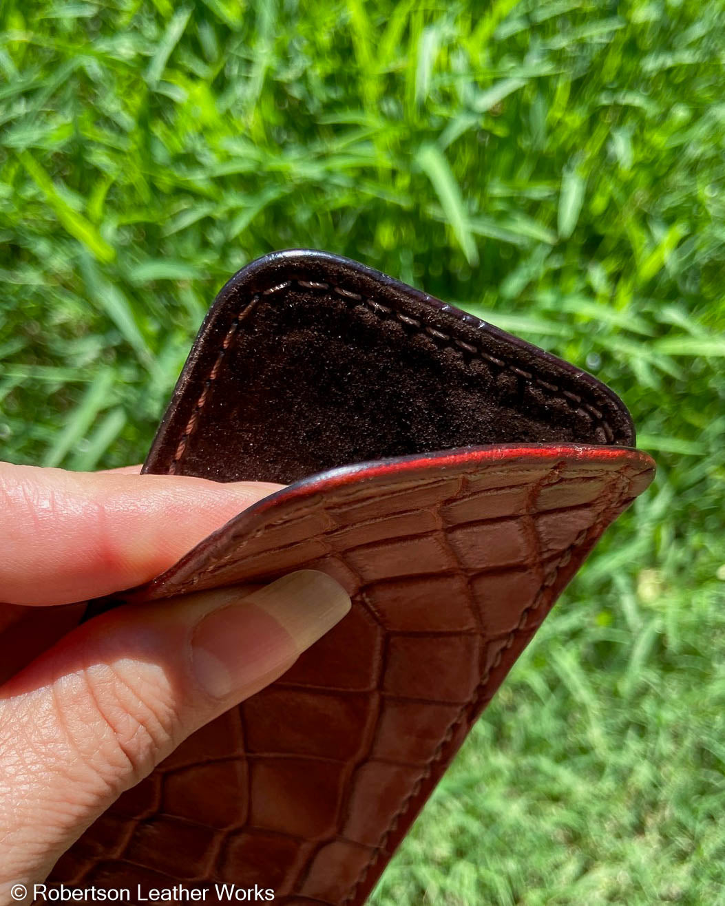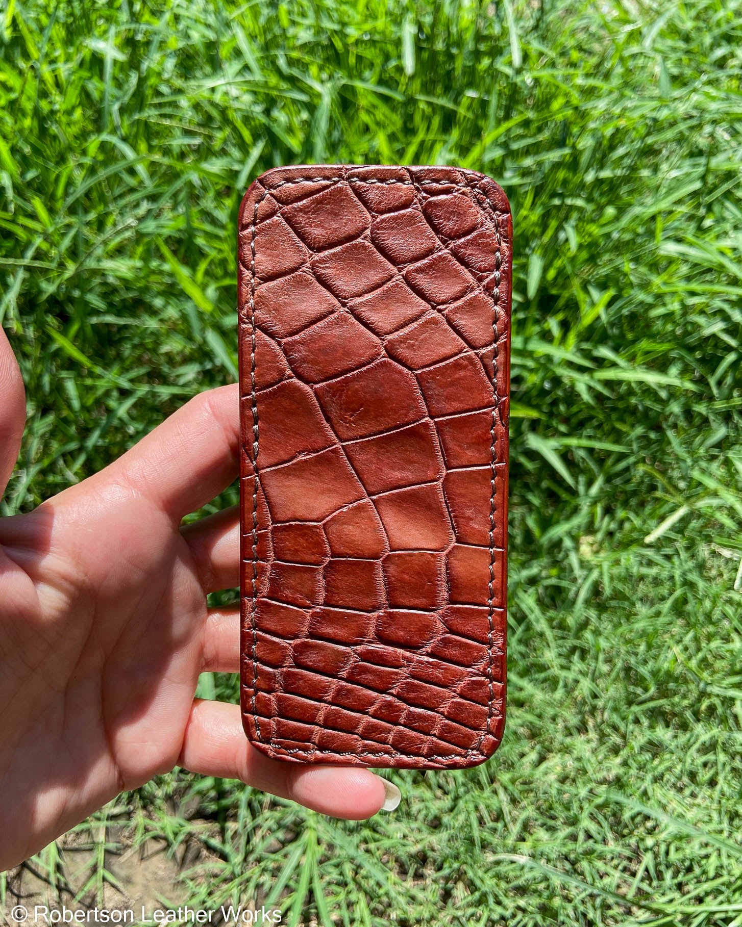 Large Rust Alligator Leather Knife Slip, Brown Stitching