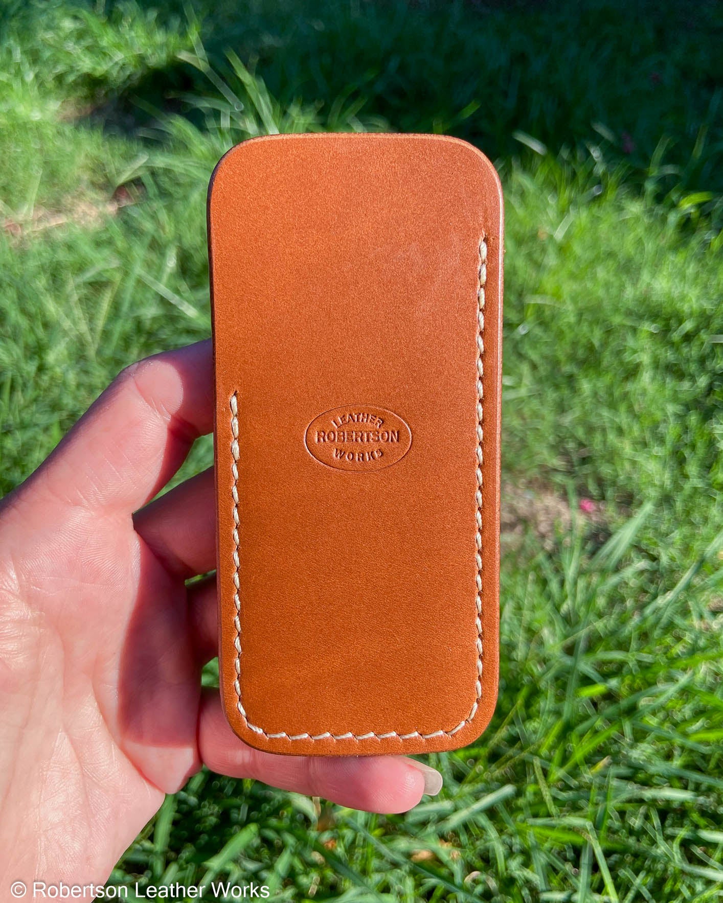 Medium Antique Tan Oxford Leather Knife Slip, Cream Stitching