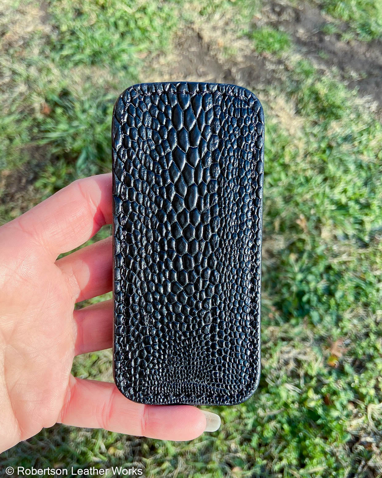 Medium Black Emu Leg Leather Knife Slip, Black Stitching