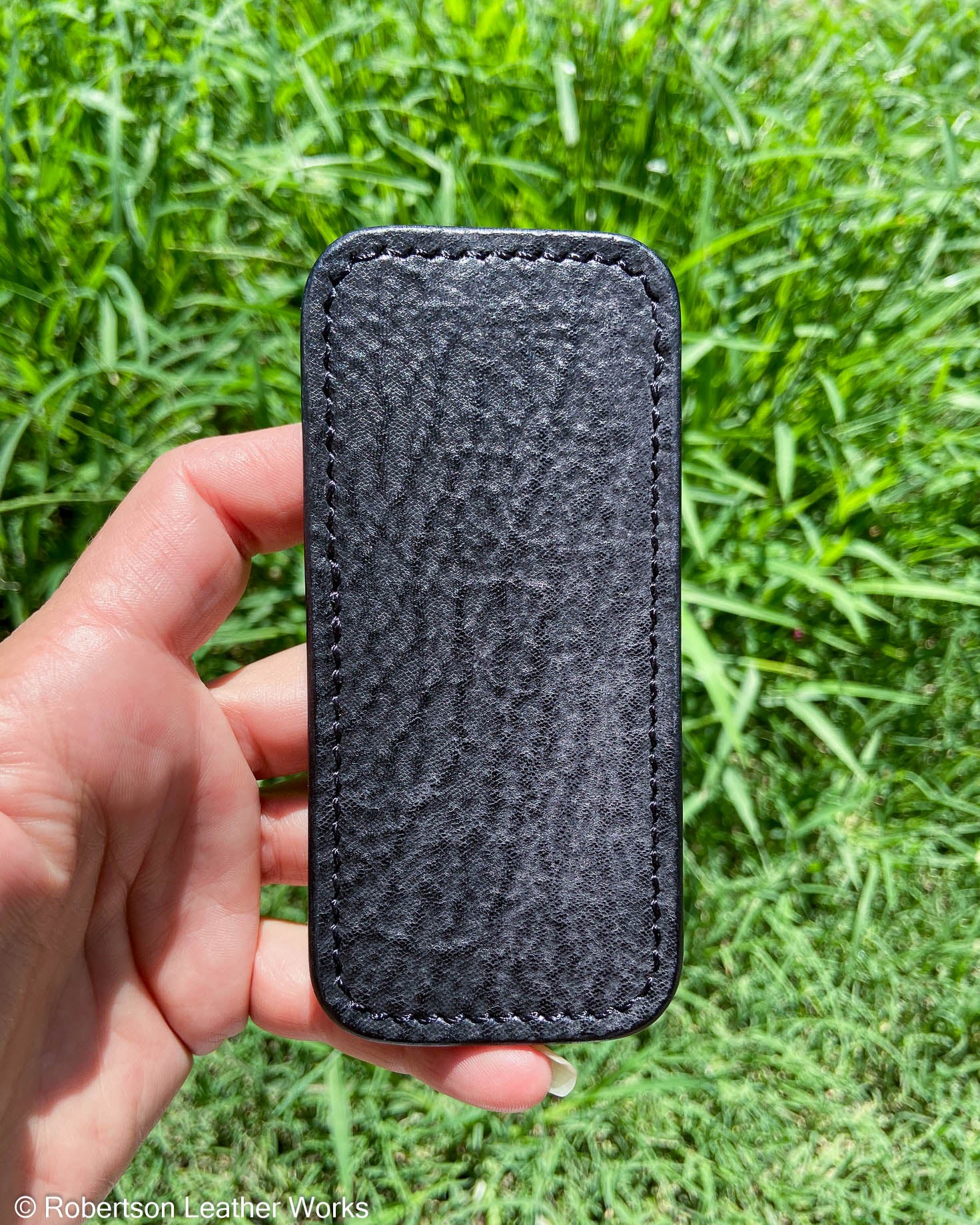 Medium Black Shark Leather Knife Slip, Black Stitching