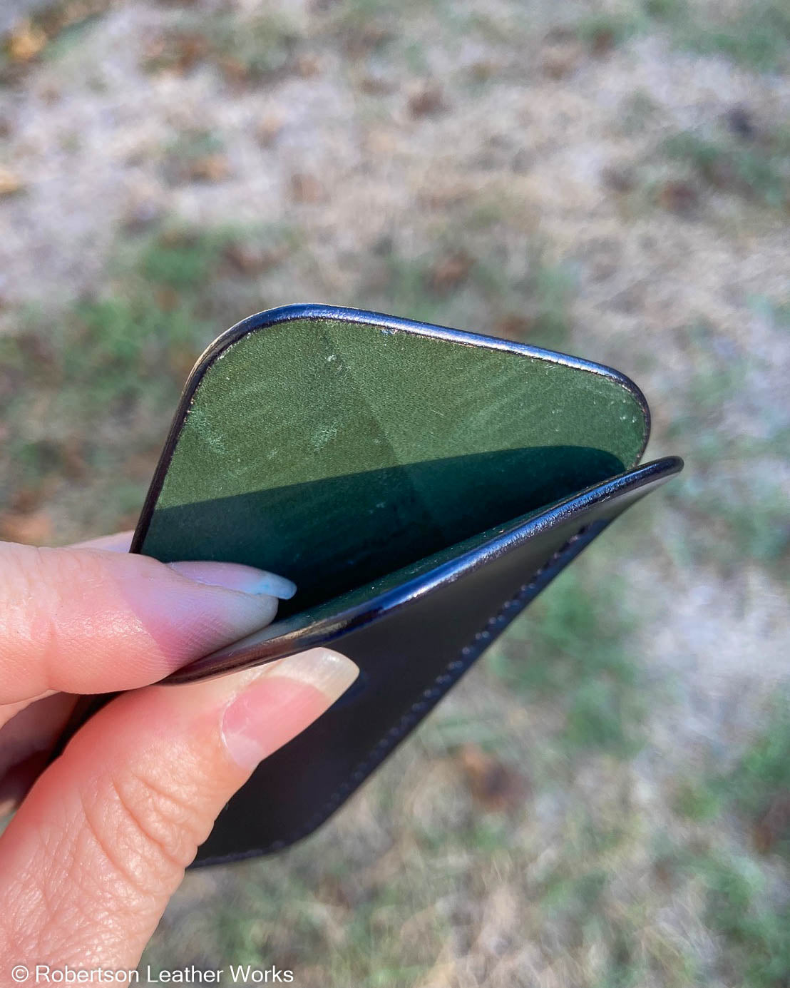 Medium Black Shell Leather Knife Slip, Black Stitching