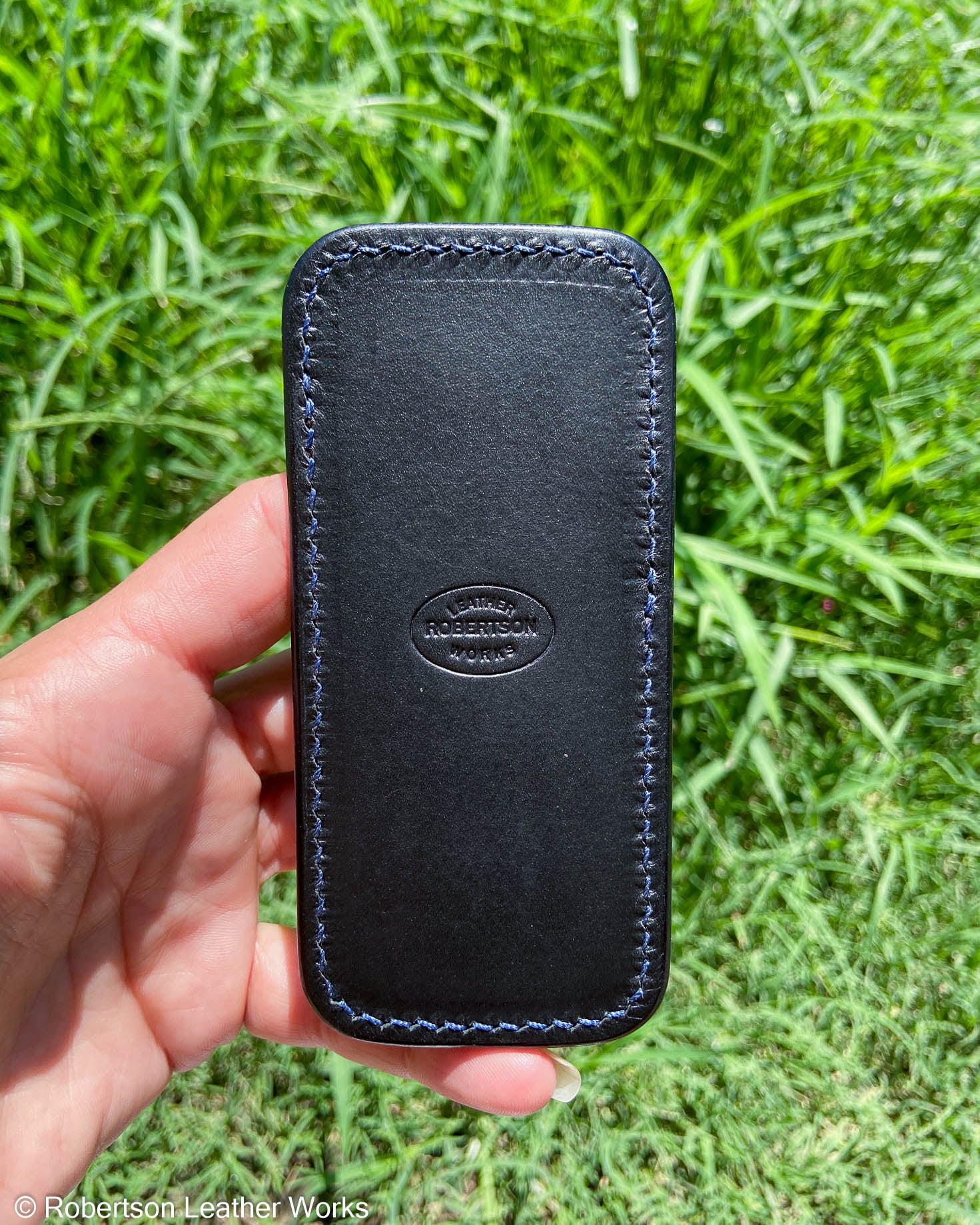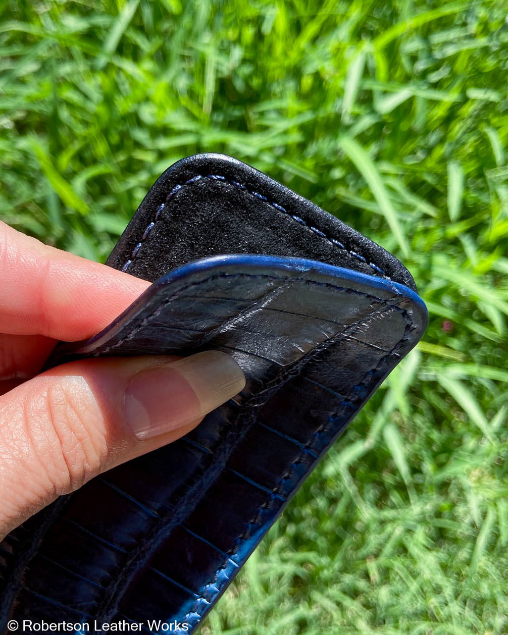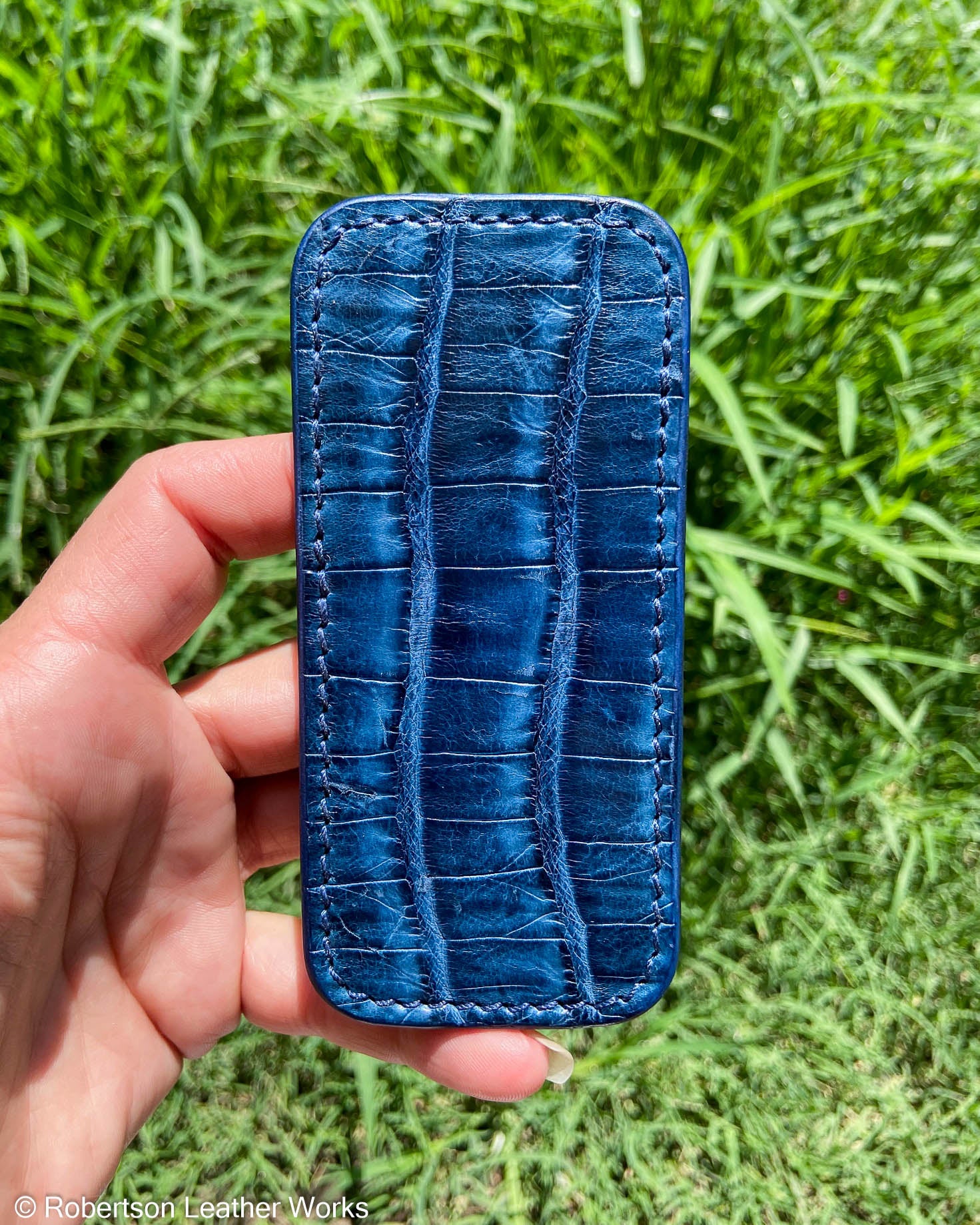 Medium Blue Caiman Tail Leather Knife Slip, Navy Stitching