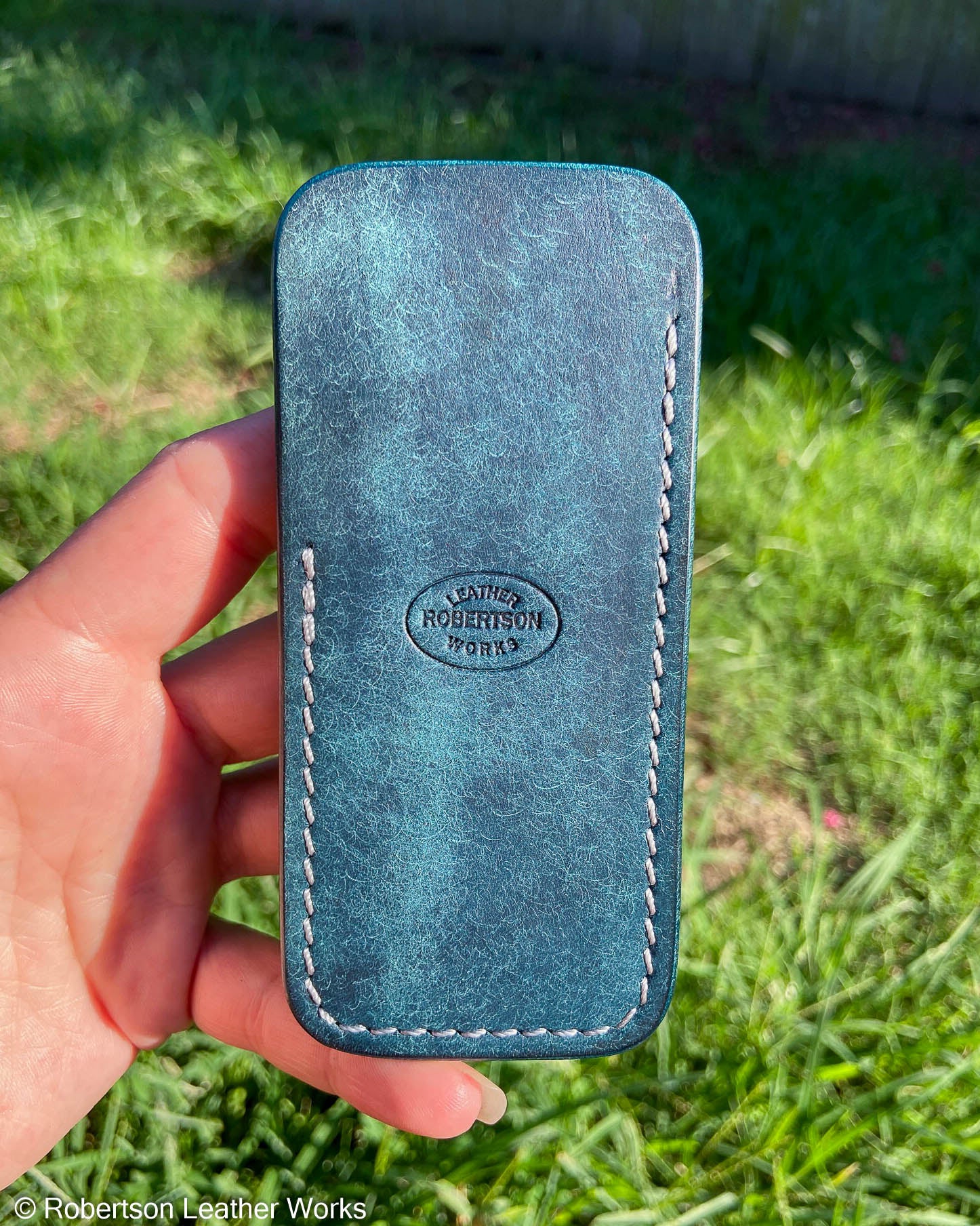 Medium Blue Pueblo Leather Knife Slip, Silver Stitching