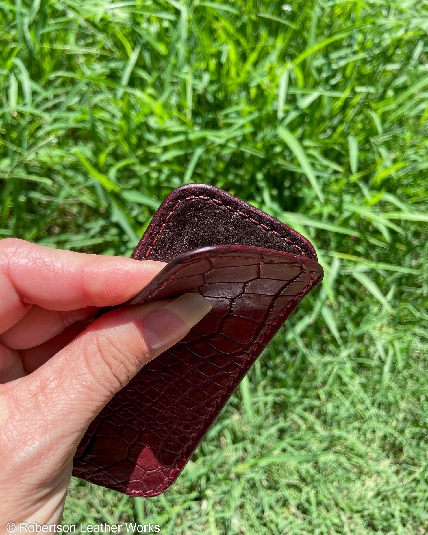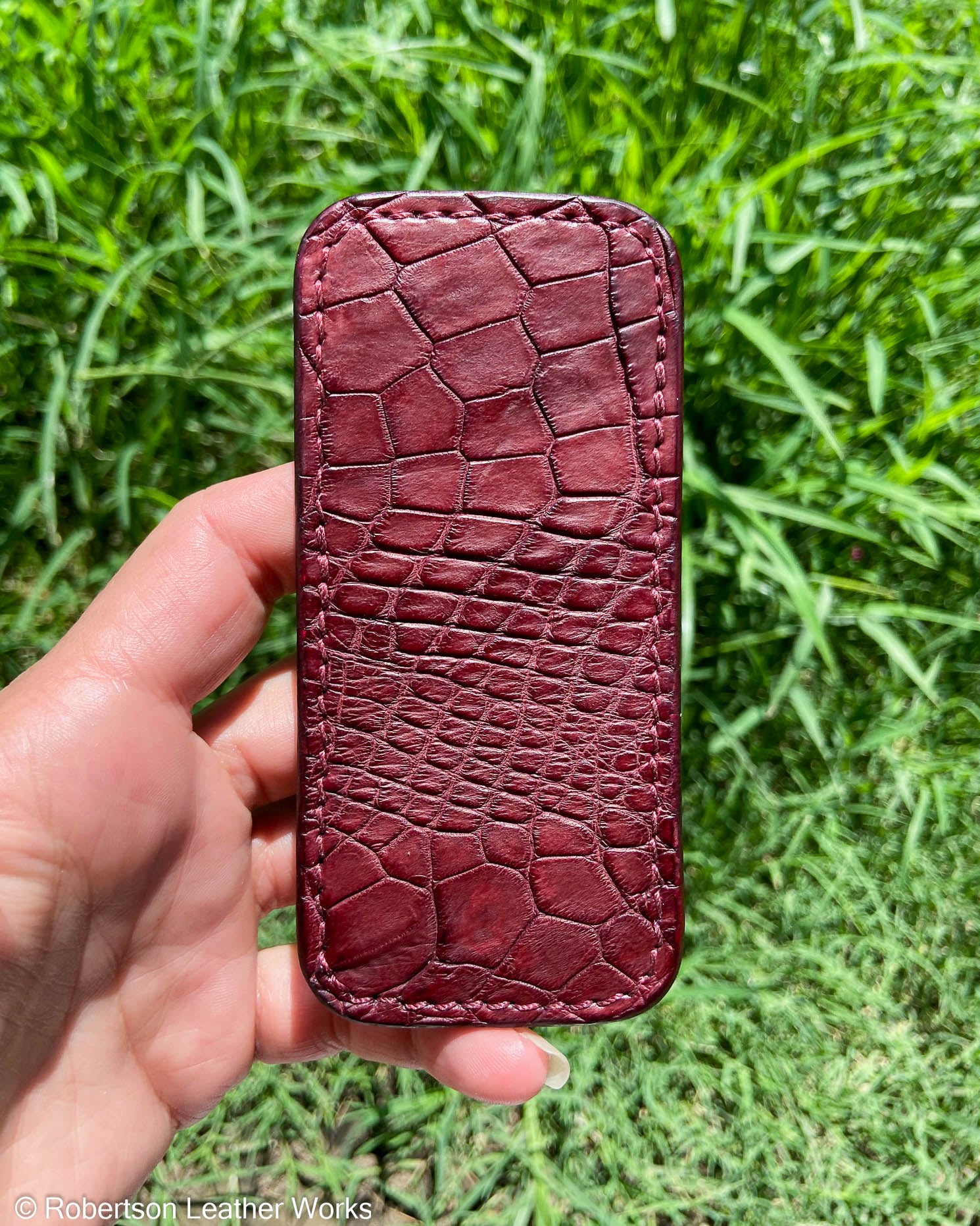 Medium Burgundy Alligator Leather Knife Slip, Maroon Stitching