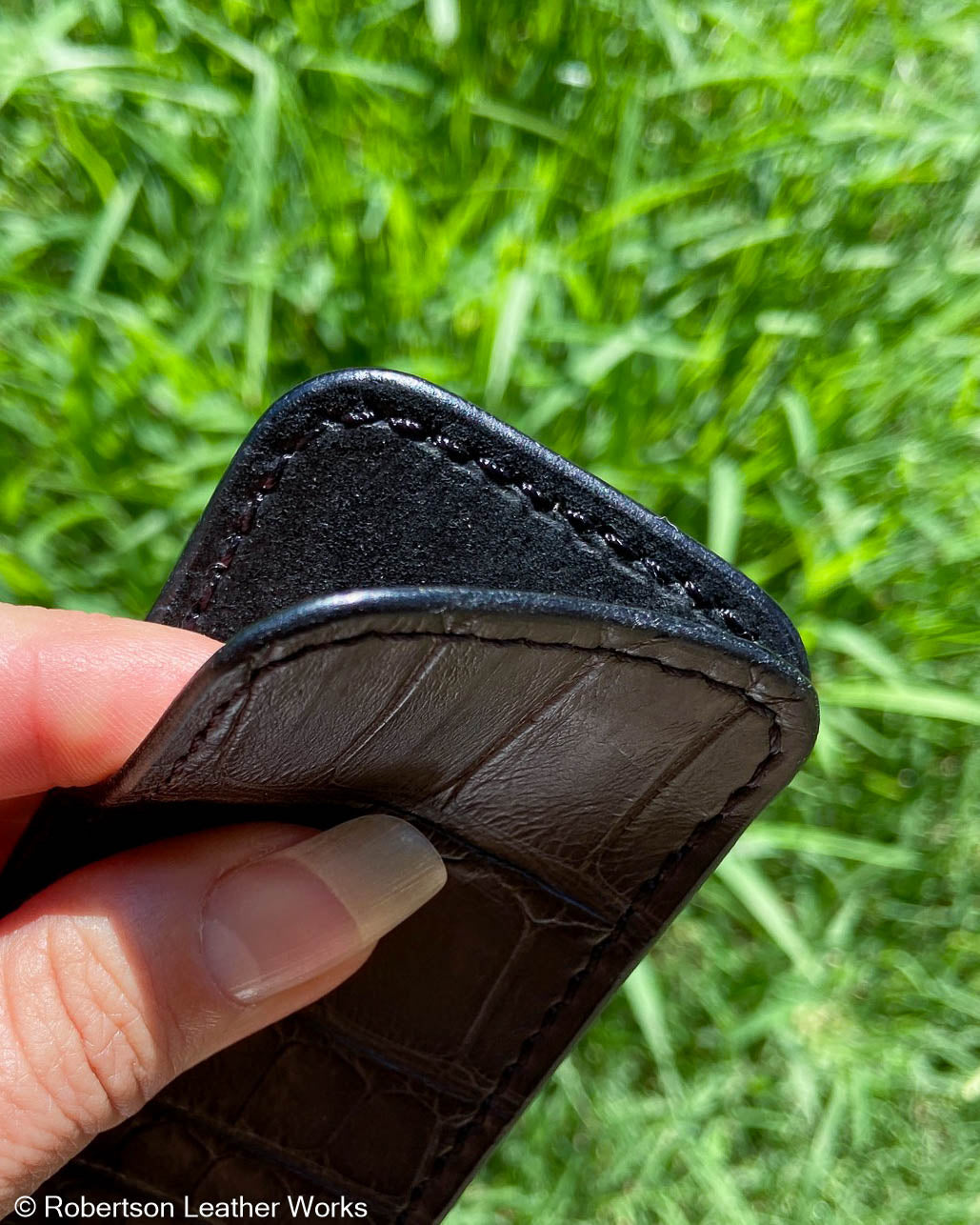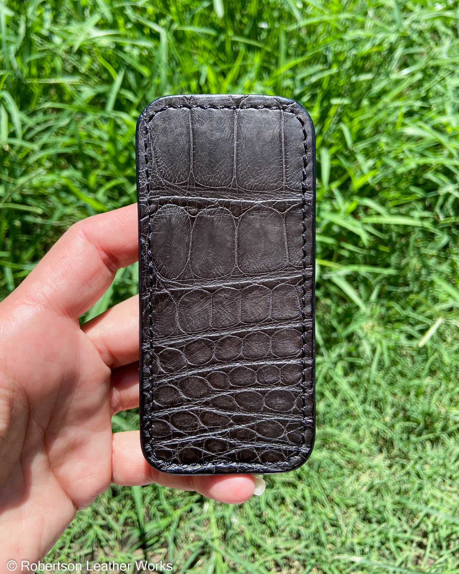 Medium Charcoal Crocodile Leather Knife Slip, Black Stitching