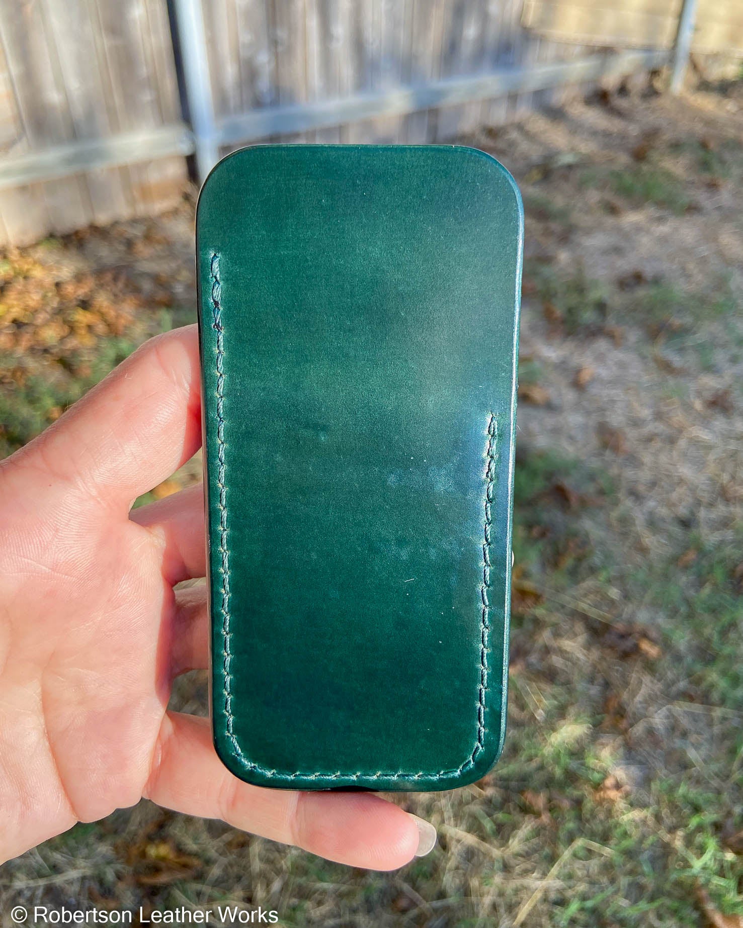 Medium Green Shell Leather Knife Slip, Emerald Stitching