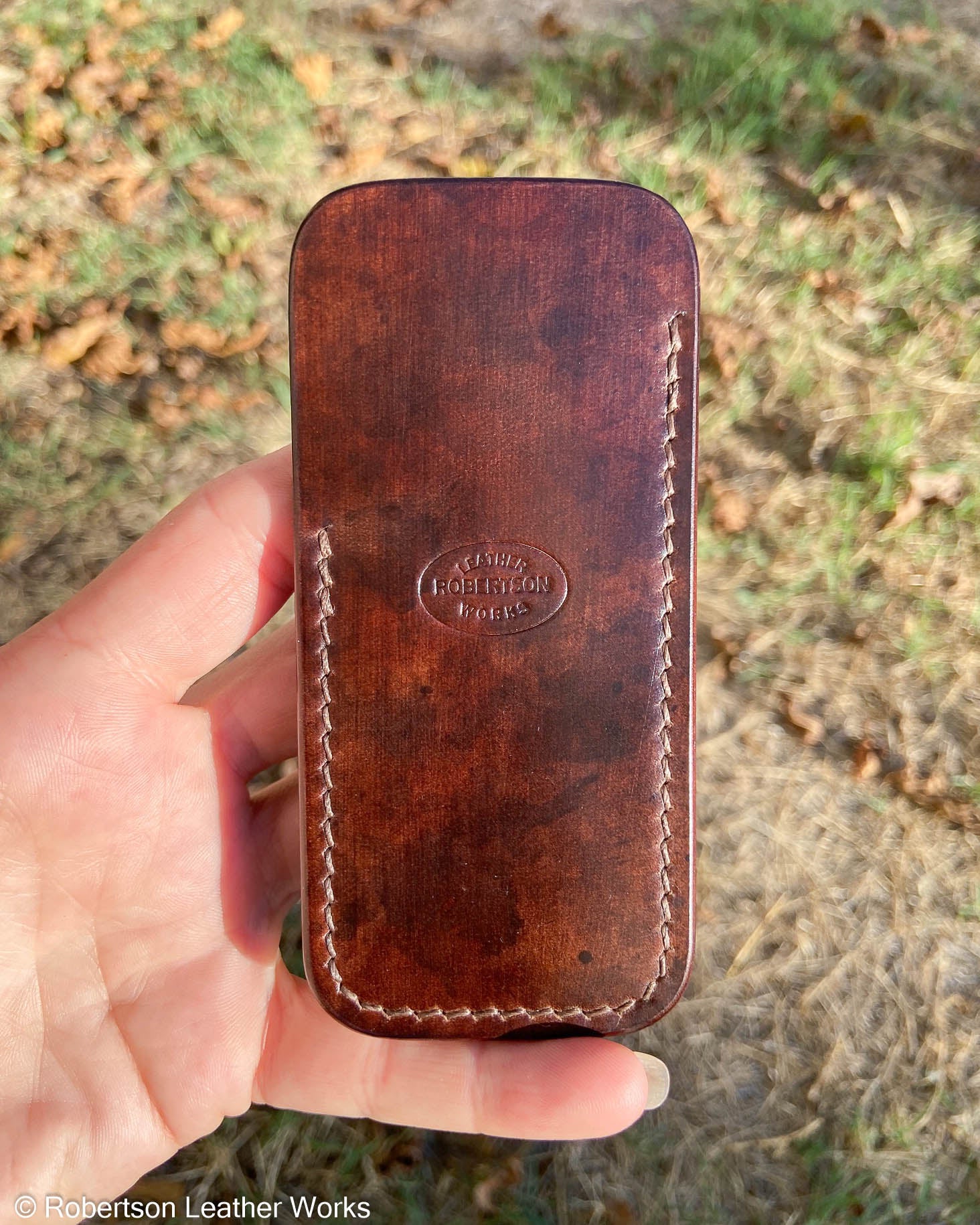 Medium H.D. Brown Shell Leather Knife Slip, Brown Stitching
