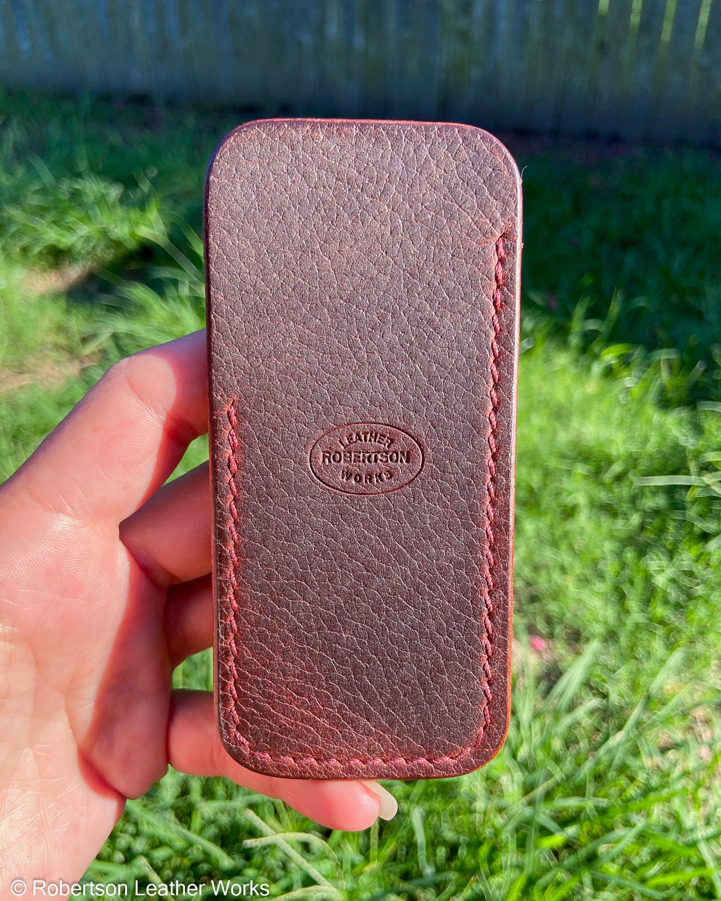 Medium Red-Brown Oil Tan Leather Knife Slip, Maroon Stitching