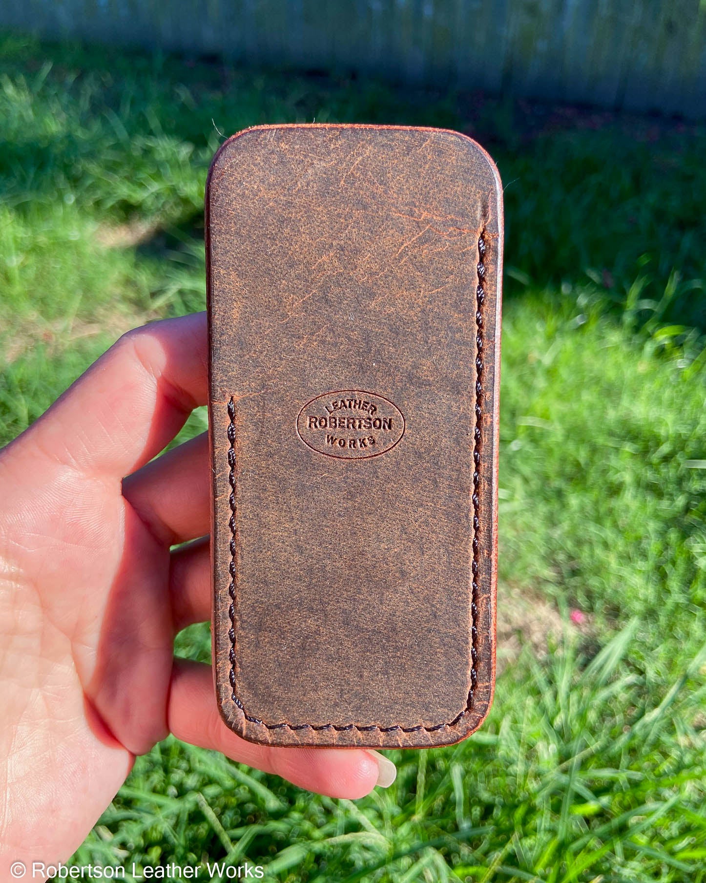 Medium Rustic Brown Water Buffalo Leather Knife Slip, Black Stitching