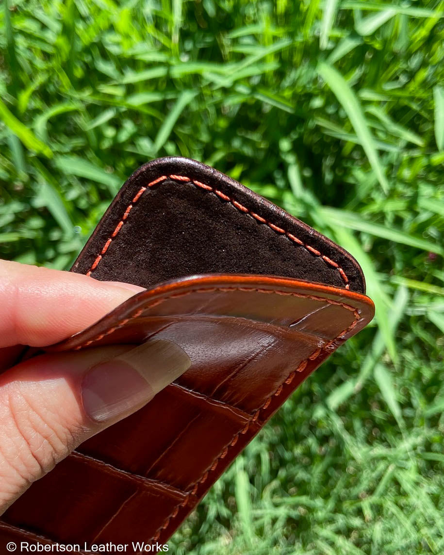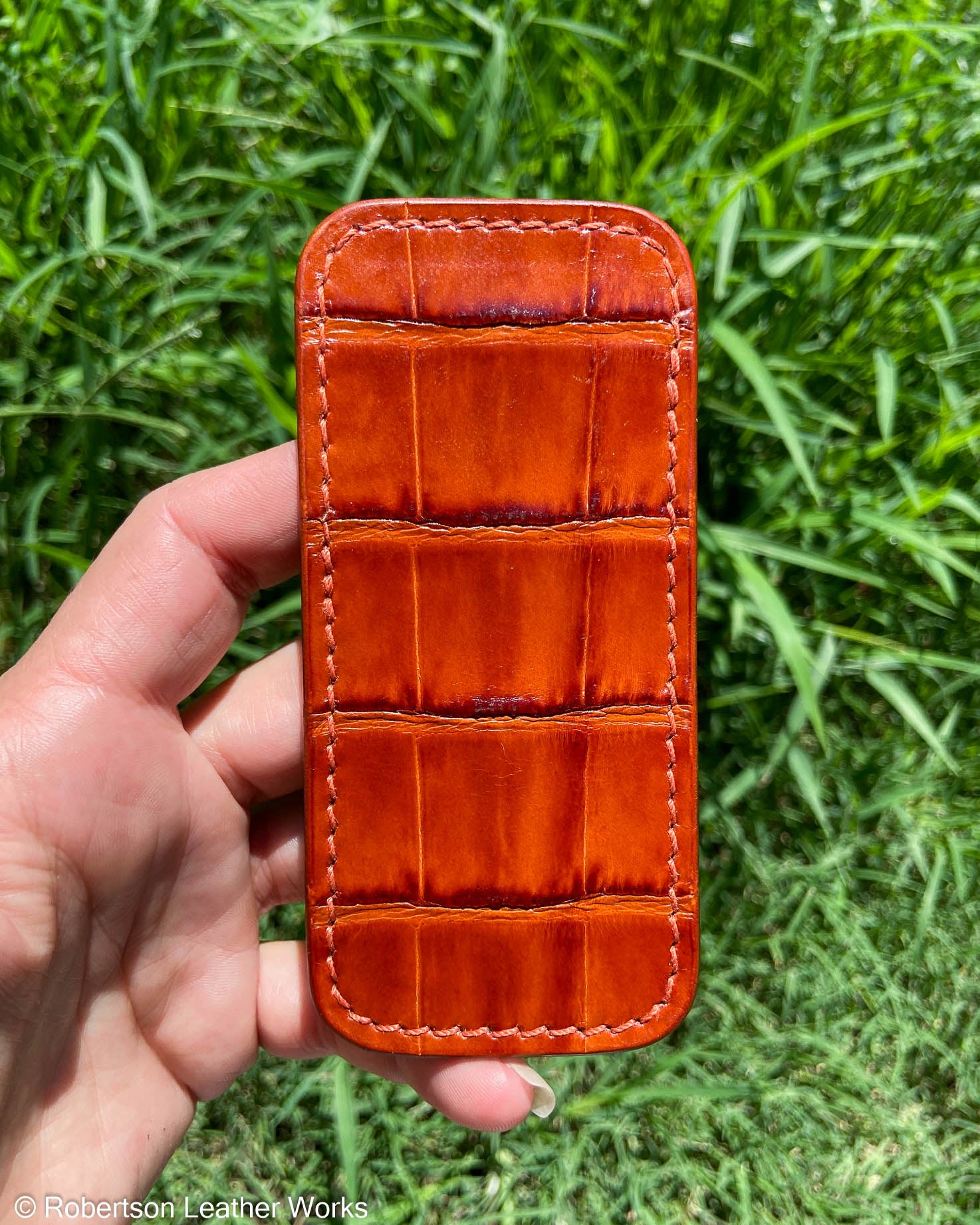 Medium Sienna Alligator Leather Knife Slip, Tangerine Stitching