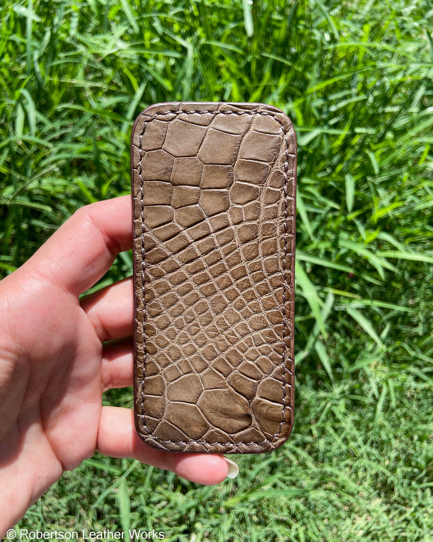 Medium Taupe Alligator Leather Knife Slip, Brown Stitching
