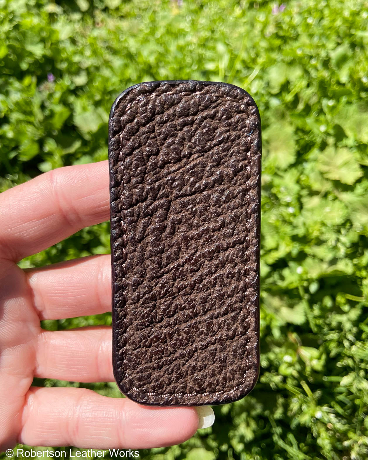 Micro Dark Brown Shark Leather Knife Slip, Brown Stitching 3