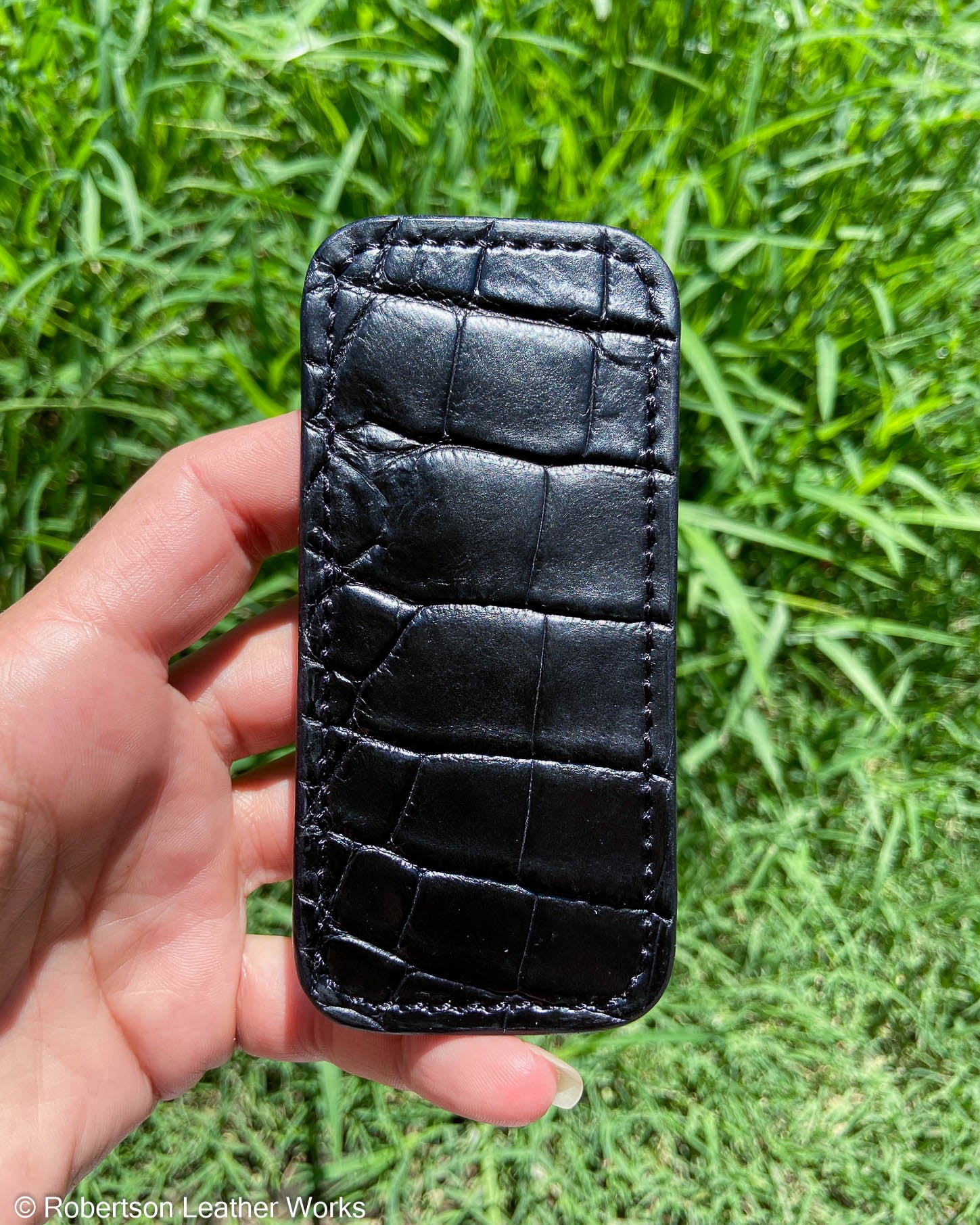Schmedium Black Alligator Leather Knife Slip, Black Stitching