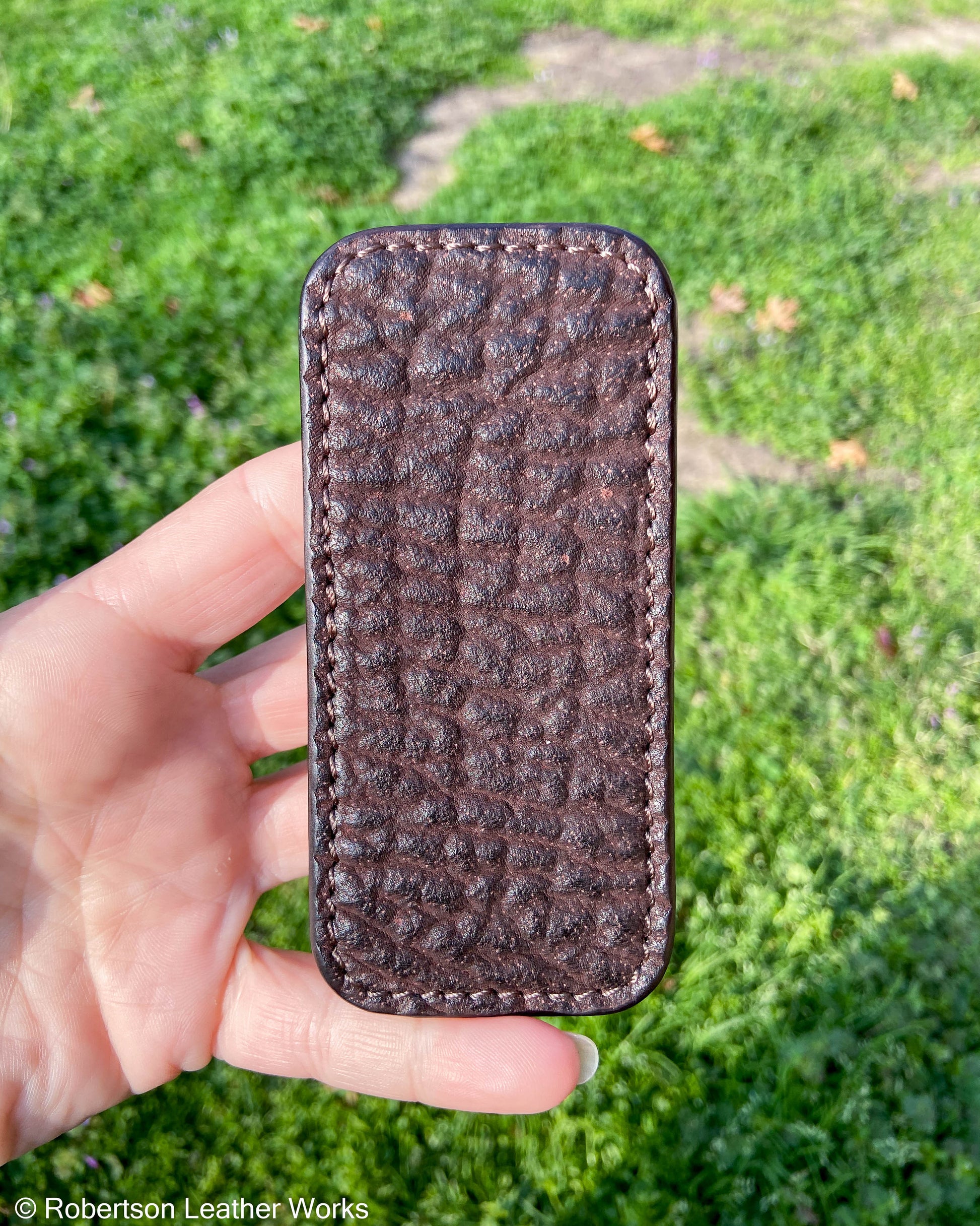 Schmedium Dark Brown Shark Leather Knife Slip, Brown Stitching