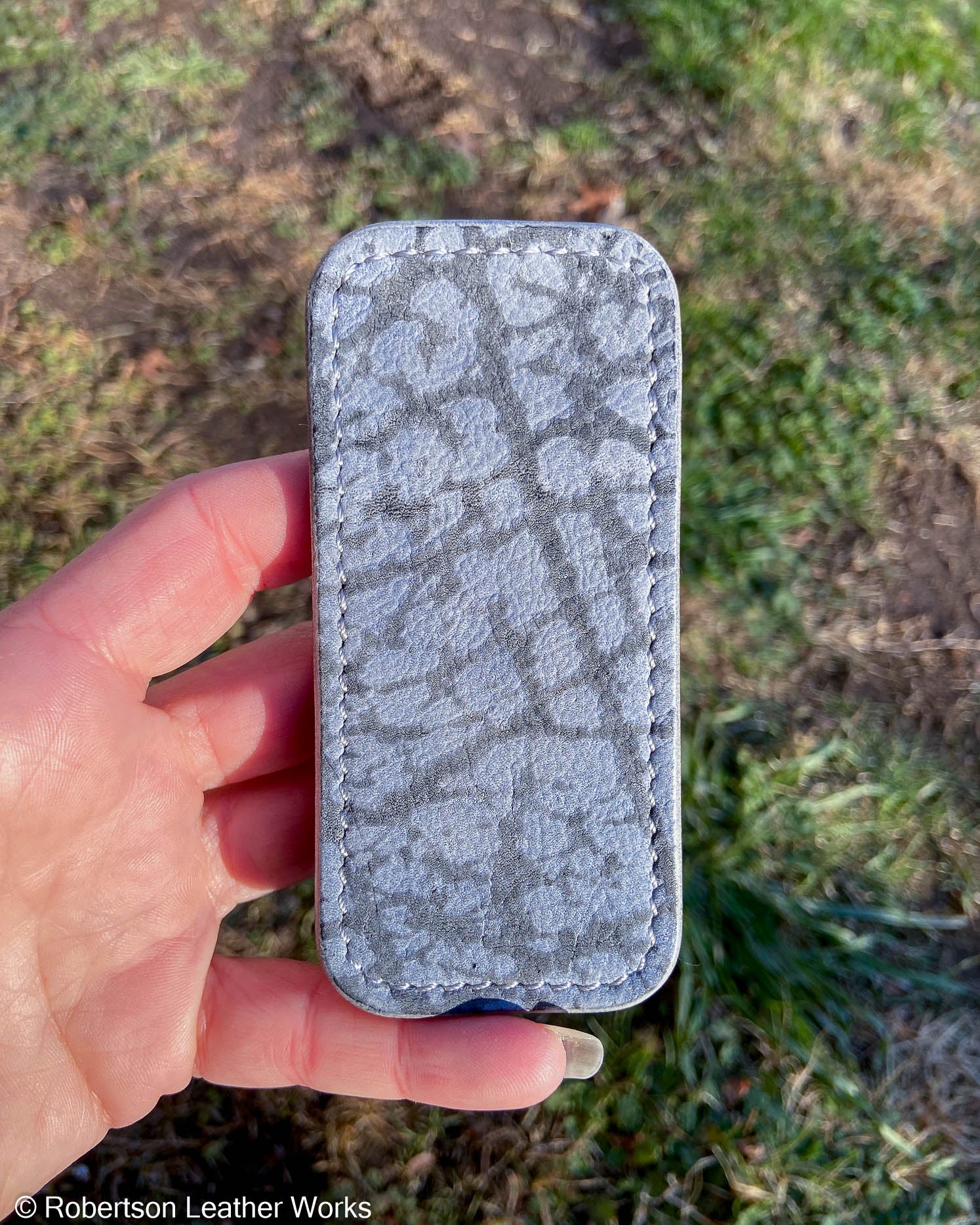 Schmedium Light Blue Giraffe Leather Knife Slip, Silver Stitching