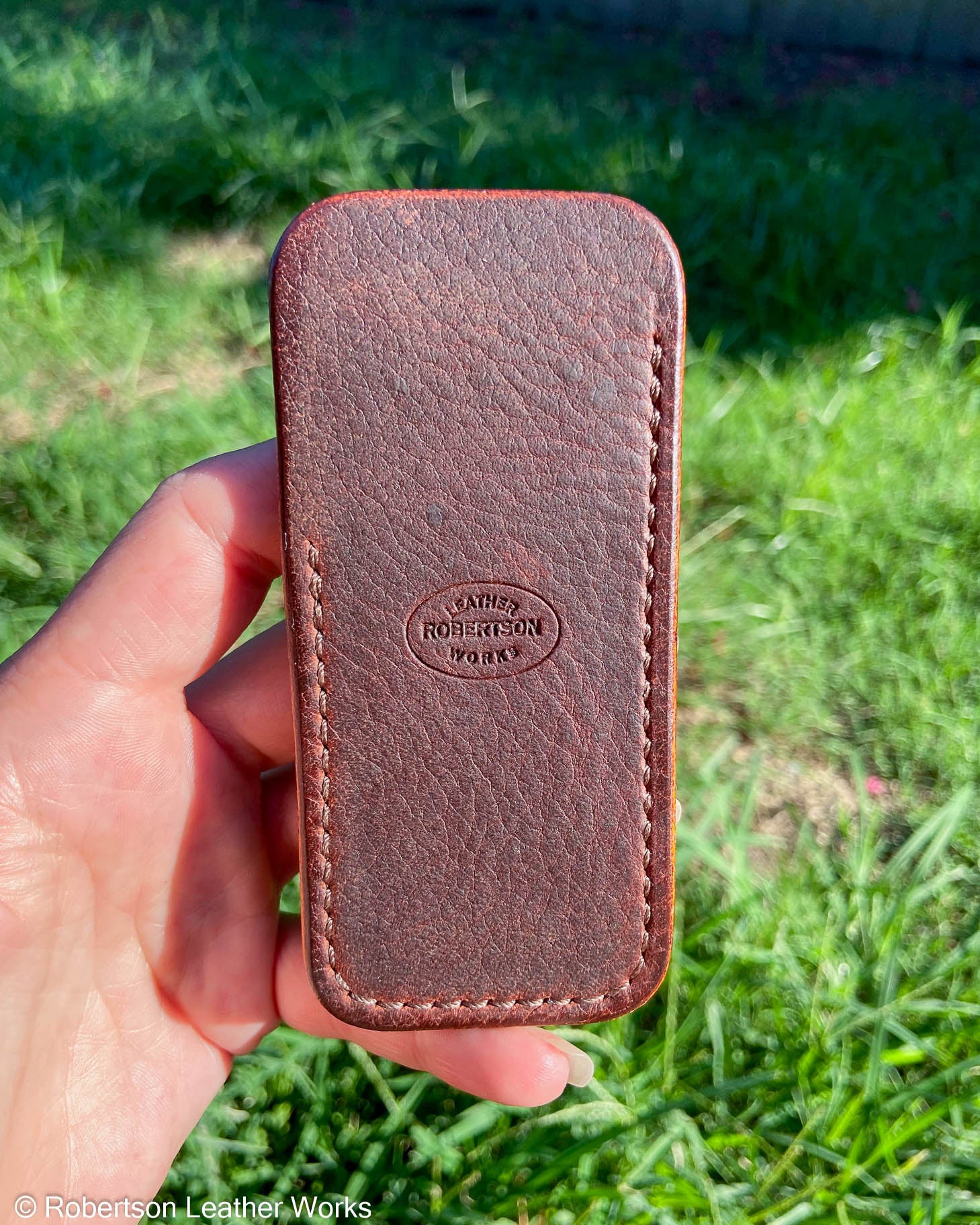 Schmedium Red-Brown Oil Tan Leather Knife Slip, Brown Stitching