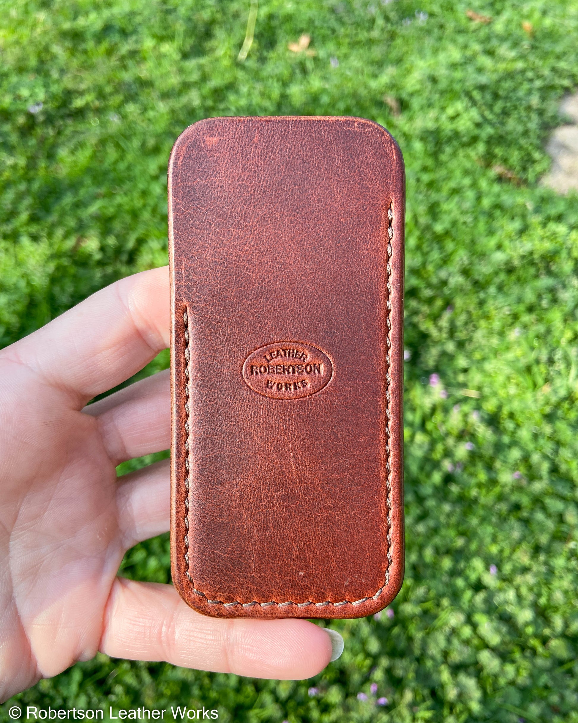 Schmedium Rust HBS Leather Knife Slip, Brown Stitching