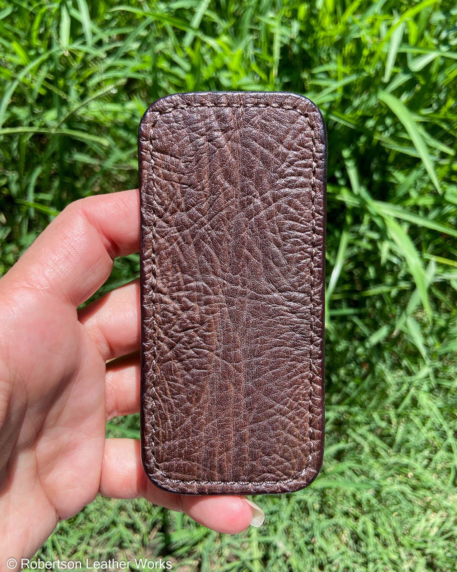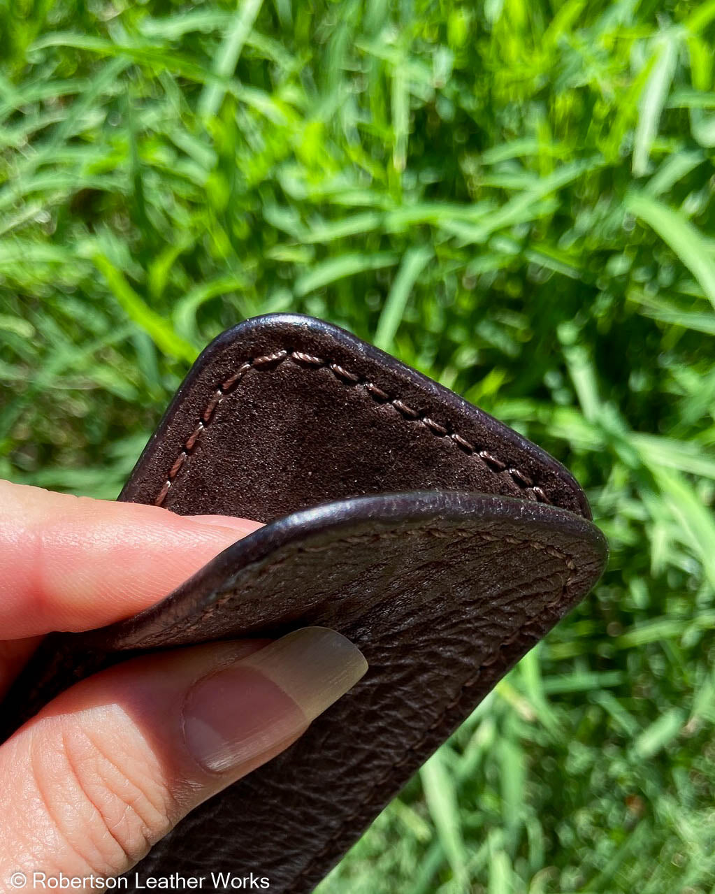 Schmedium Rustic Brown Shark Leather Knife Slip, Brown Stitching