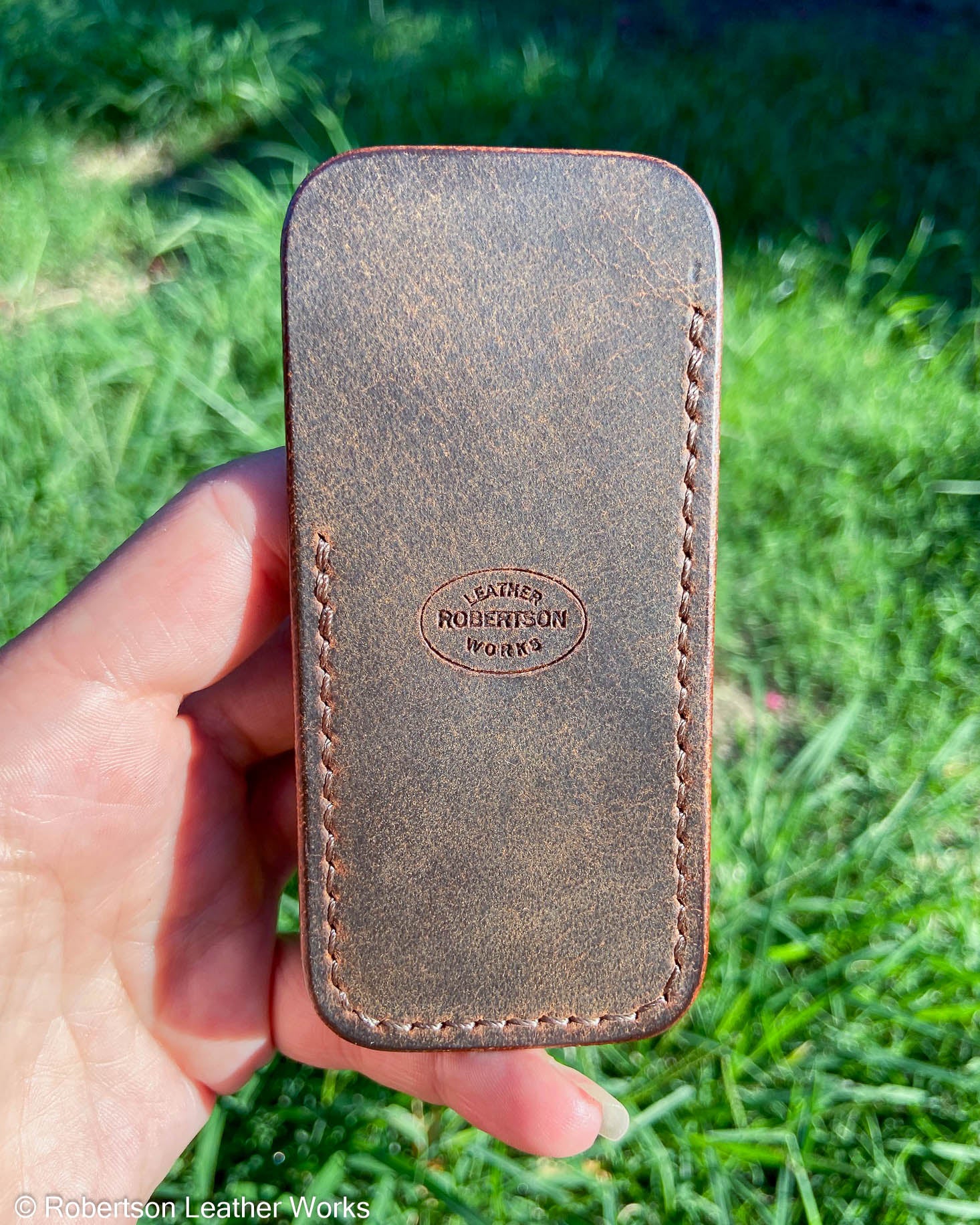 Schmedium Rustic Brown Water Buffalo Leather Knife Slip, Brown Stitching