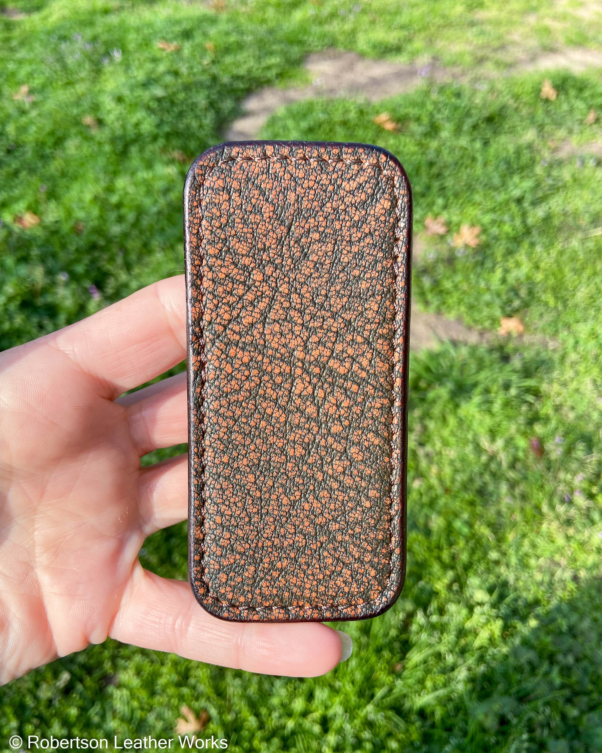 Schmedium Safari Cognac Cape Buffalo Leather Knife Slip, Brown Stitching