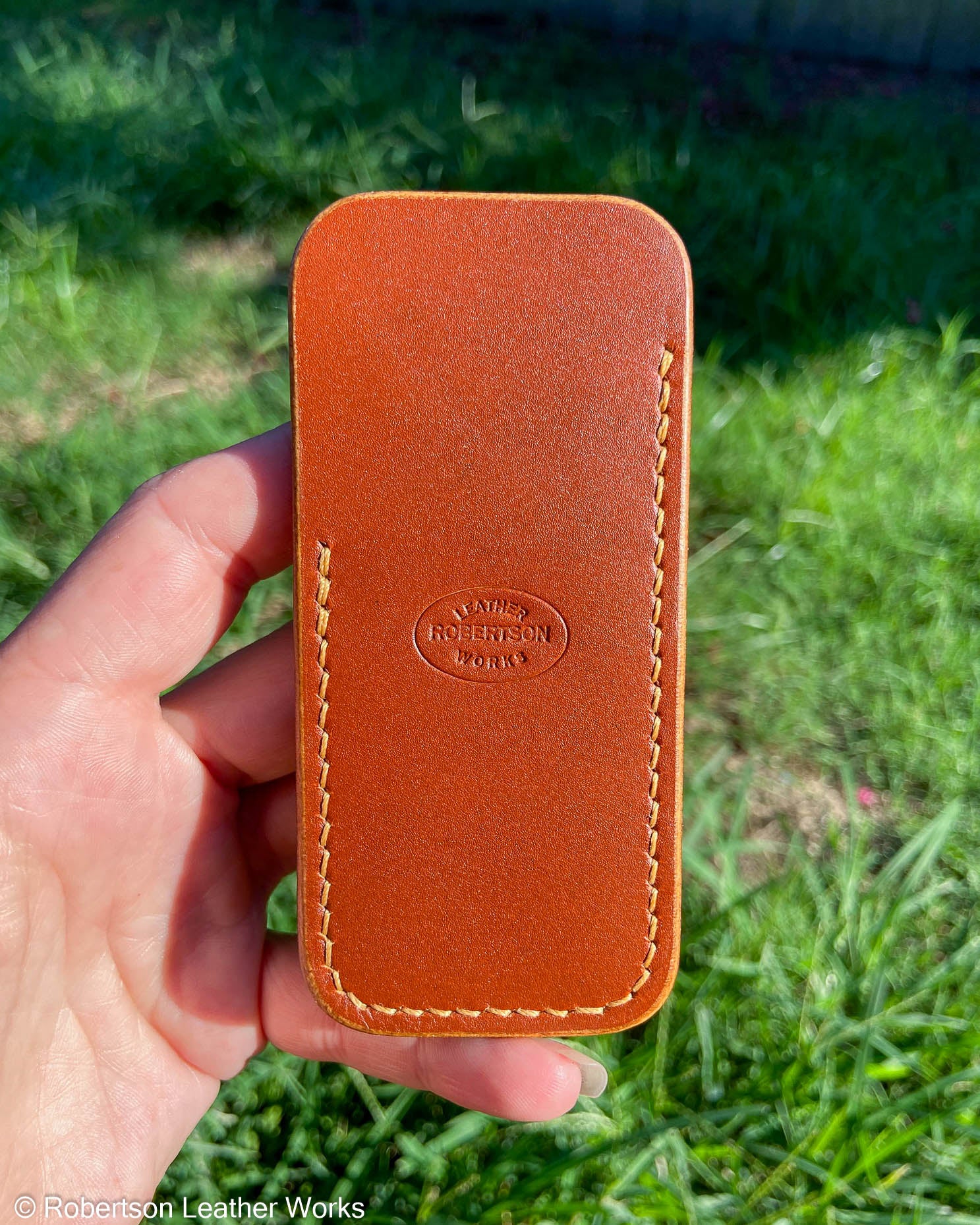 Schmedium Sienna Oil Tan Leather Knife Slip, Goldenrod Stitching