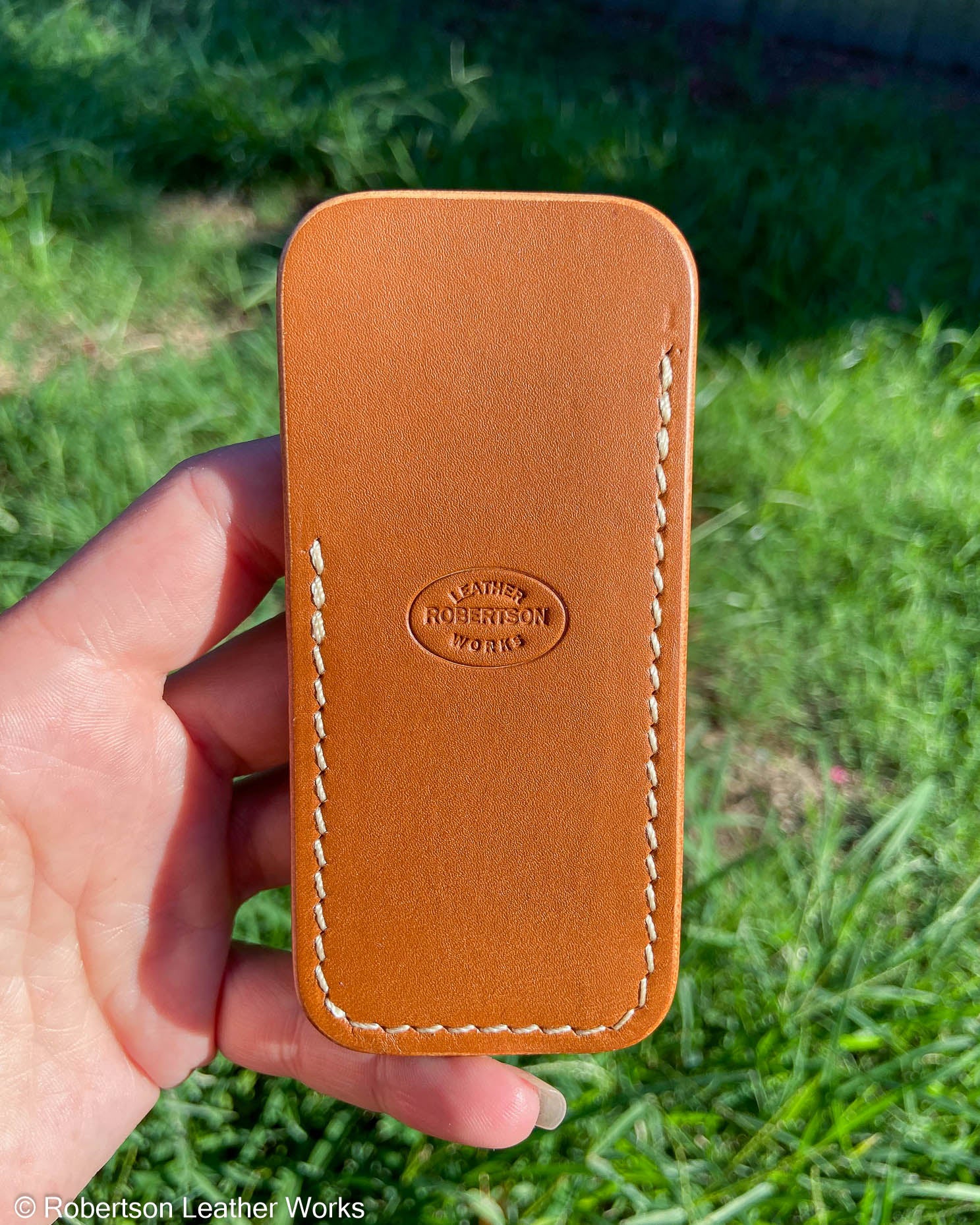 Schmedium Whiskey Veg Tan Leather Knife Slip, Cream Stitching