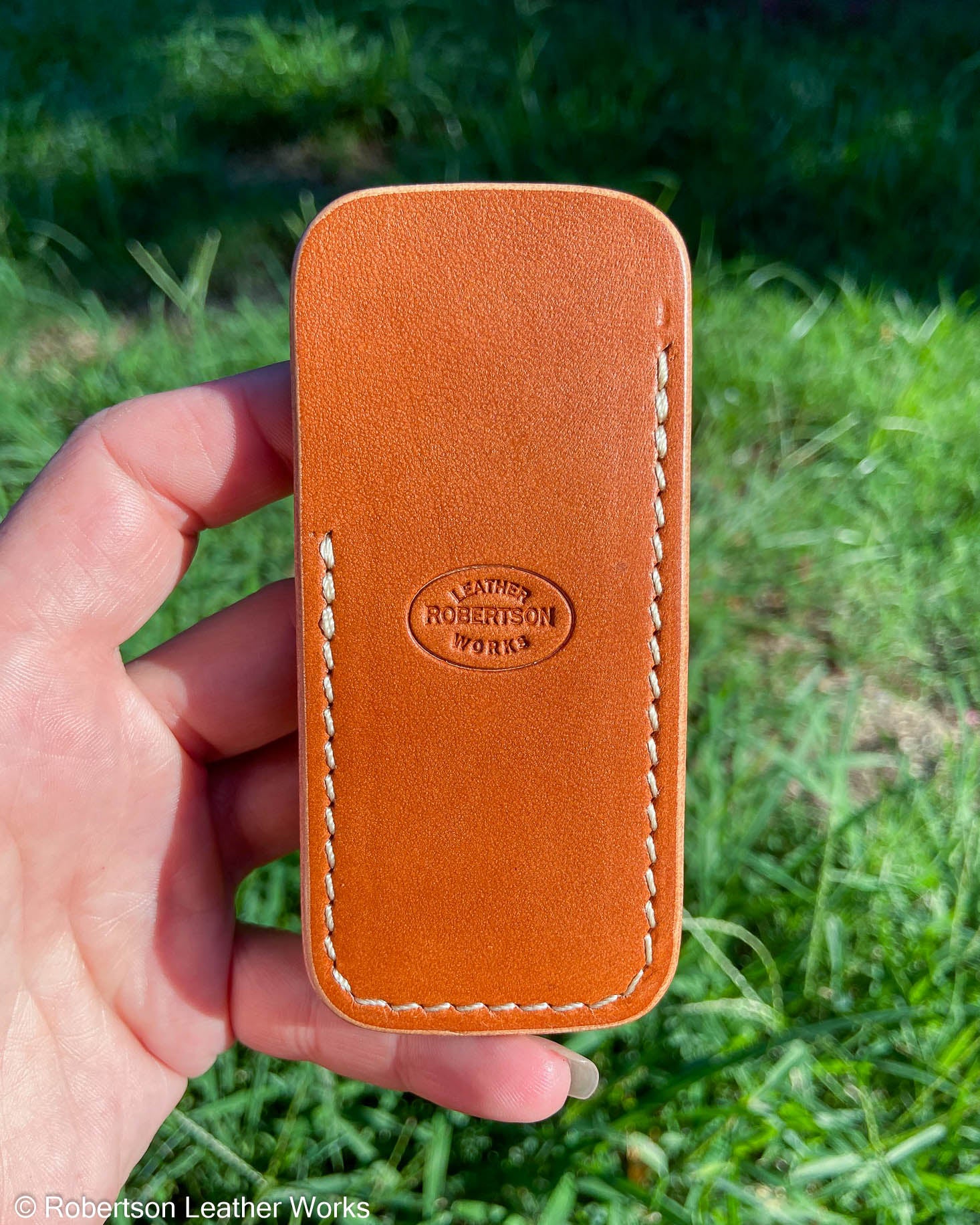 Small Amber Veg Tan Leather Knife Slip, Cream Stitching