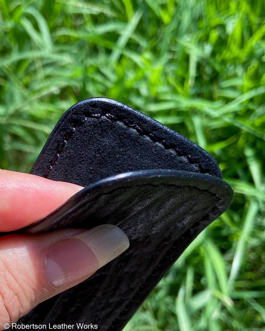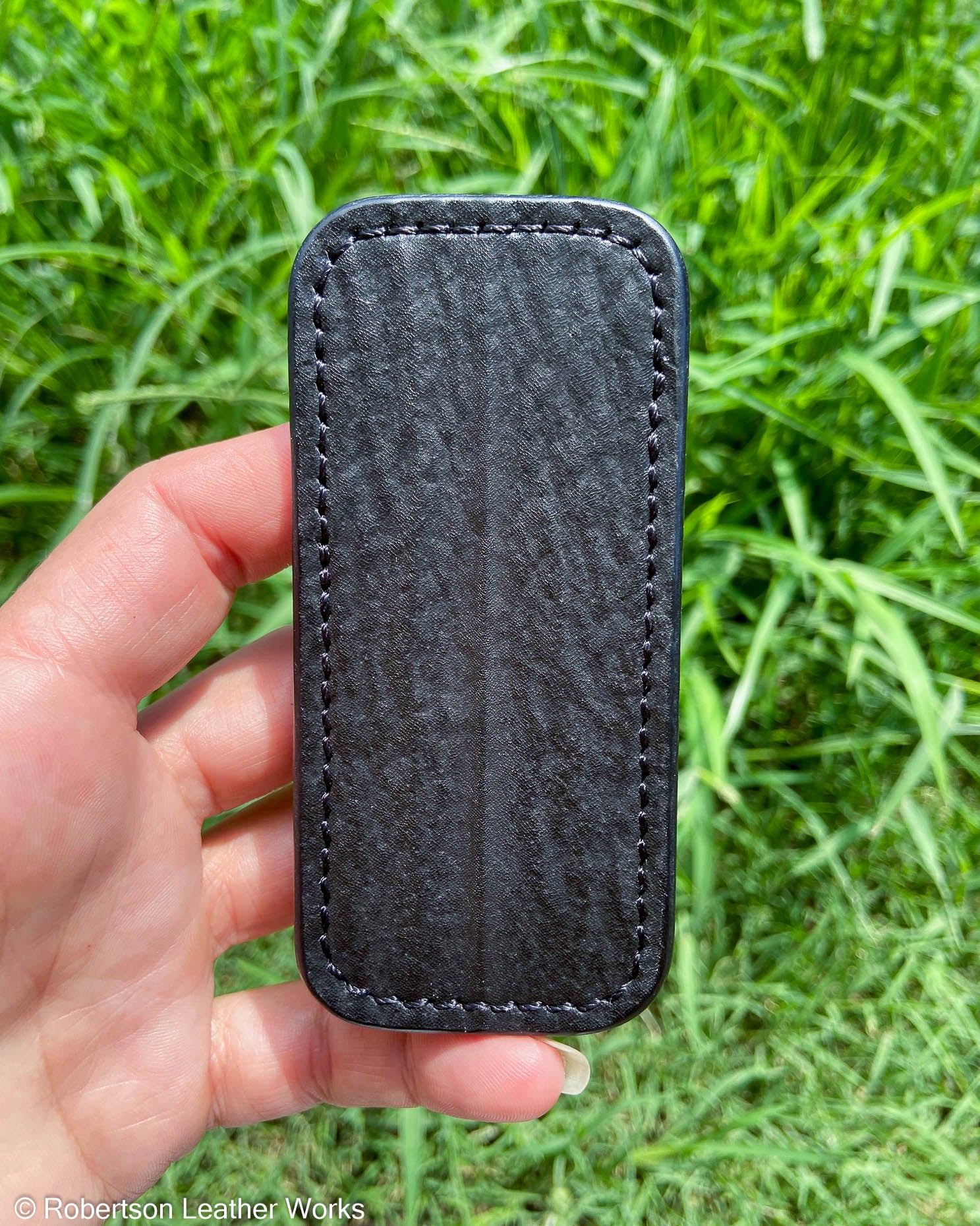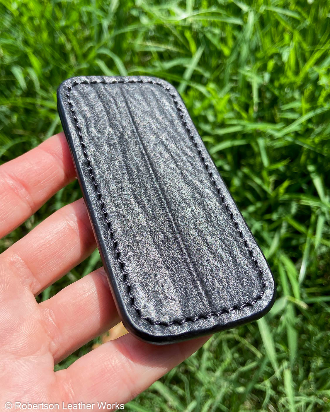 Small Black Shark Leather Knife Slip, Black Stitching 2
