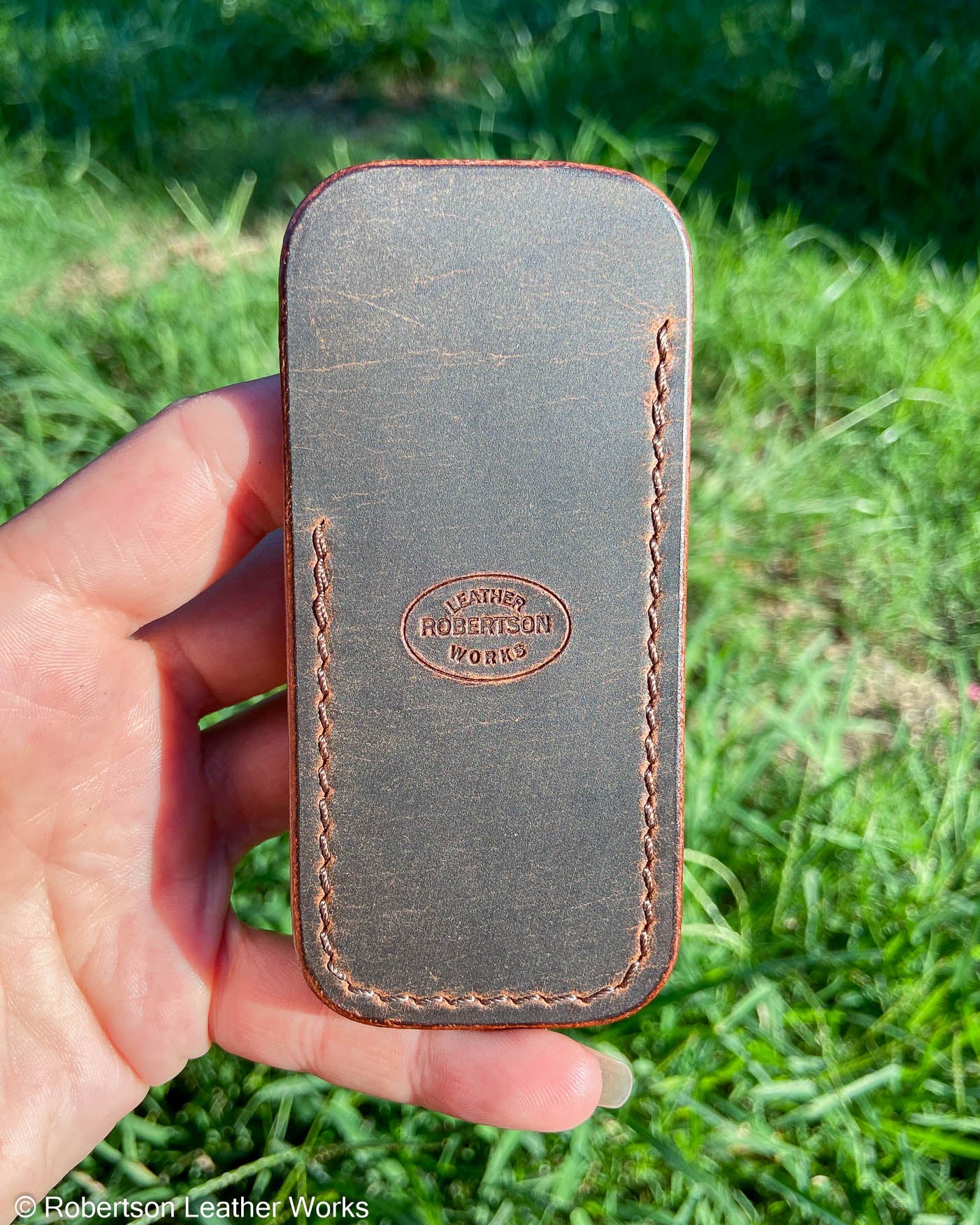Small Dark Brown Water Buffalo Leather Knife Slip, Brown Stitching