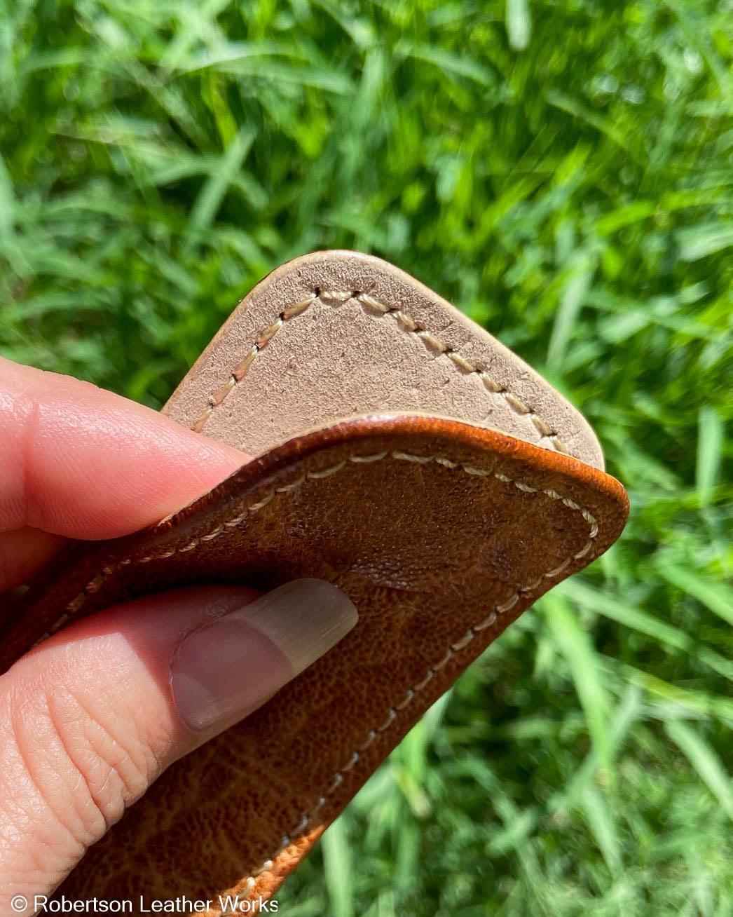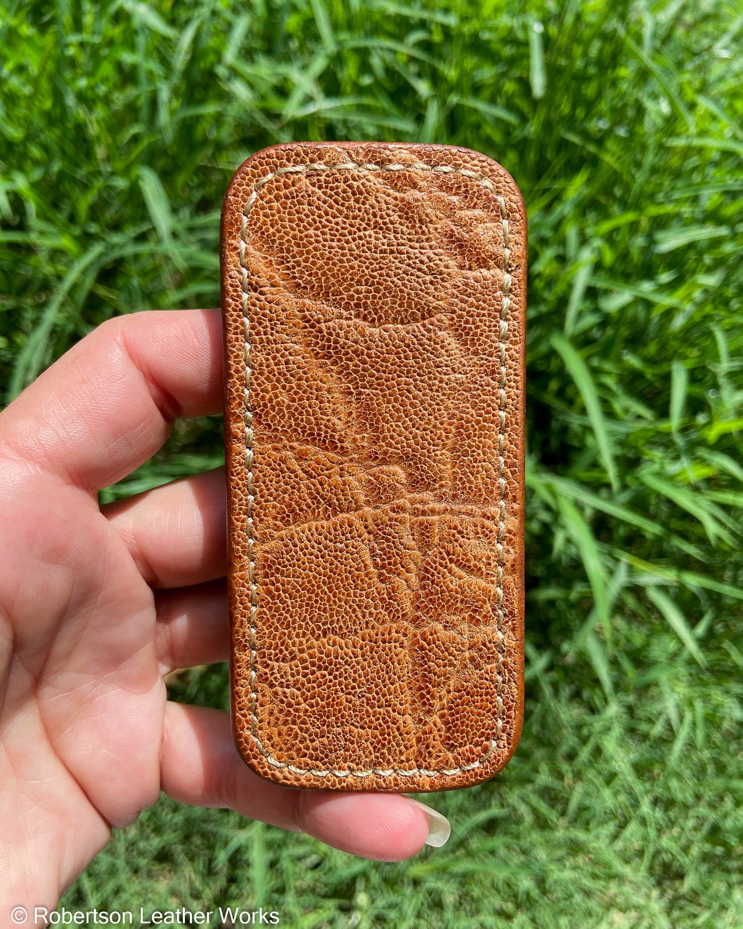 Small Glazed Whiskey Elephant Leather Knife Slip, Cream Stitching