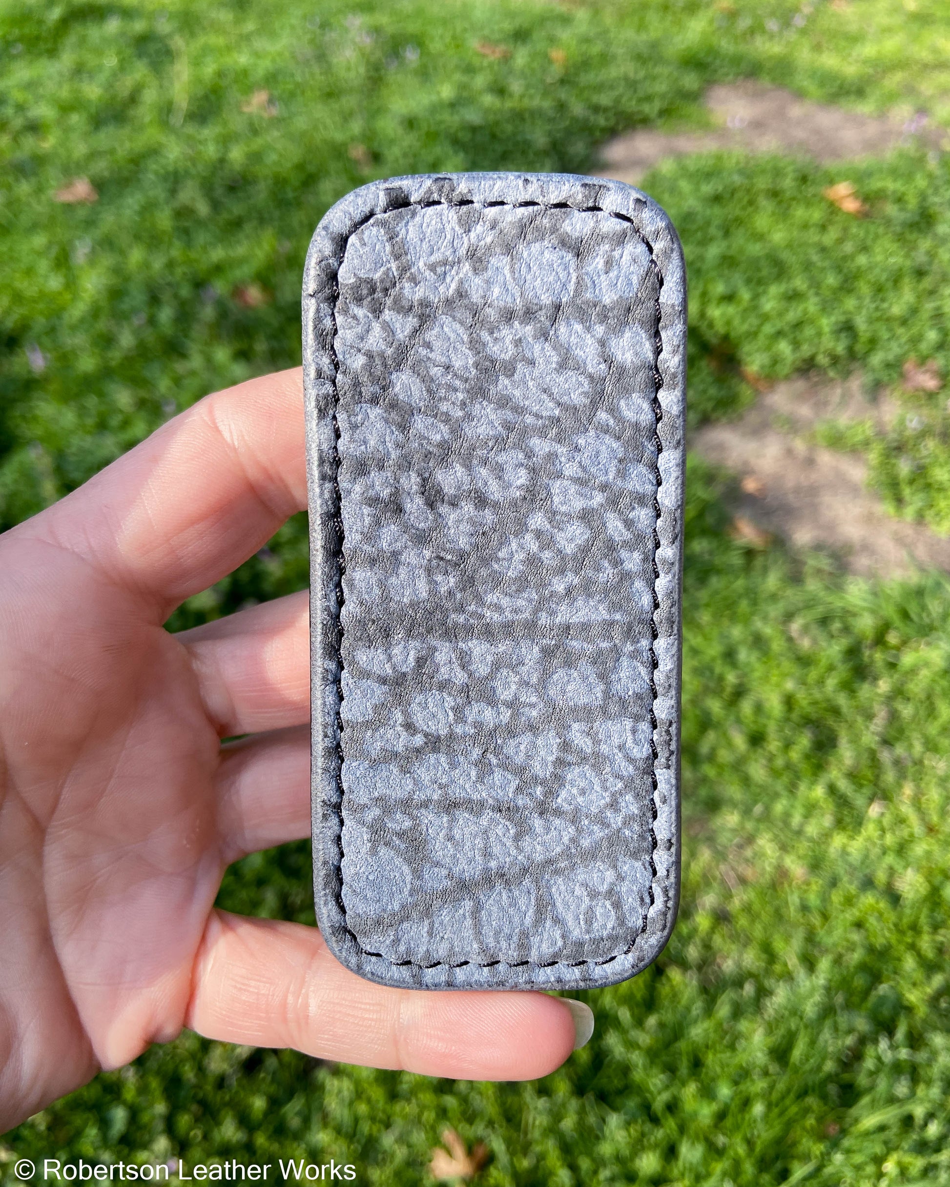 Small Light Blue Giraffe Leather Knife Slip, Black Stitching