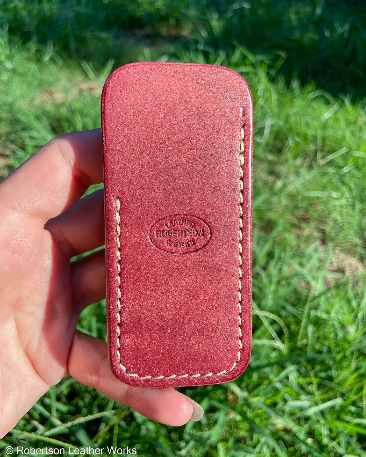 Small Red Pueblo Leather Knife Slip, Cream Stitching