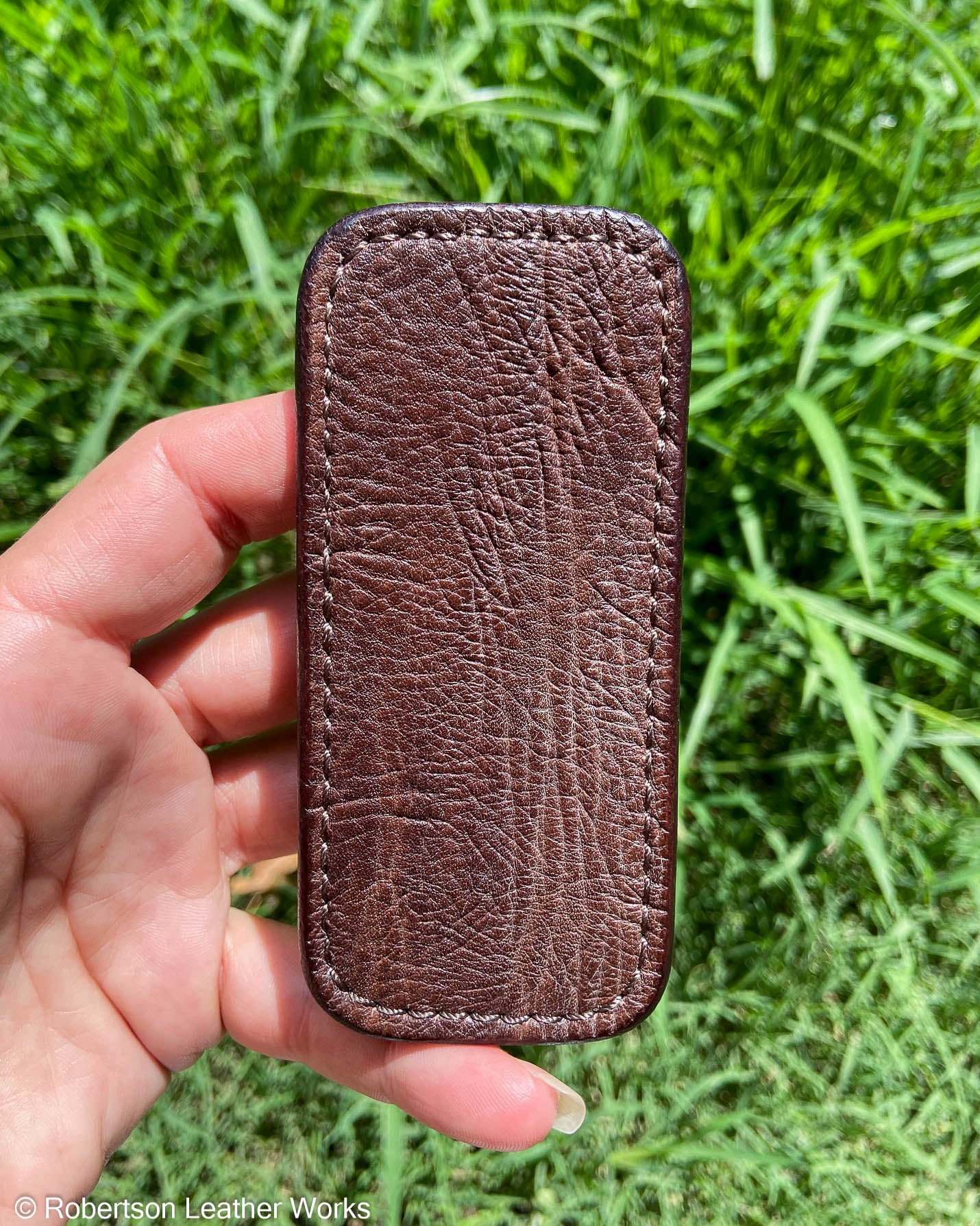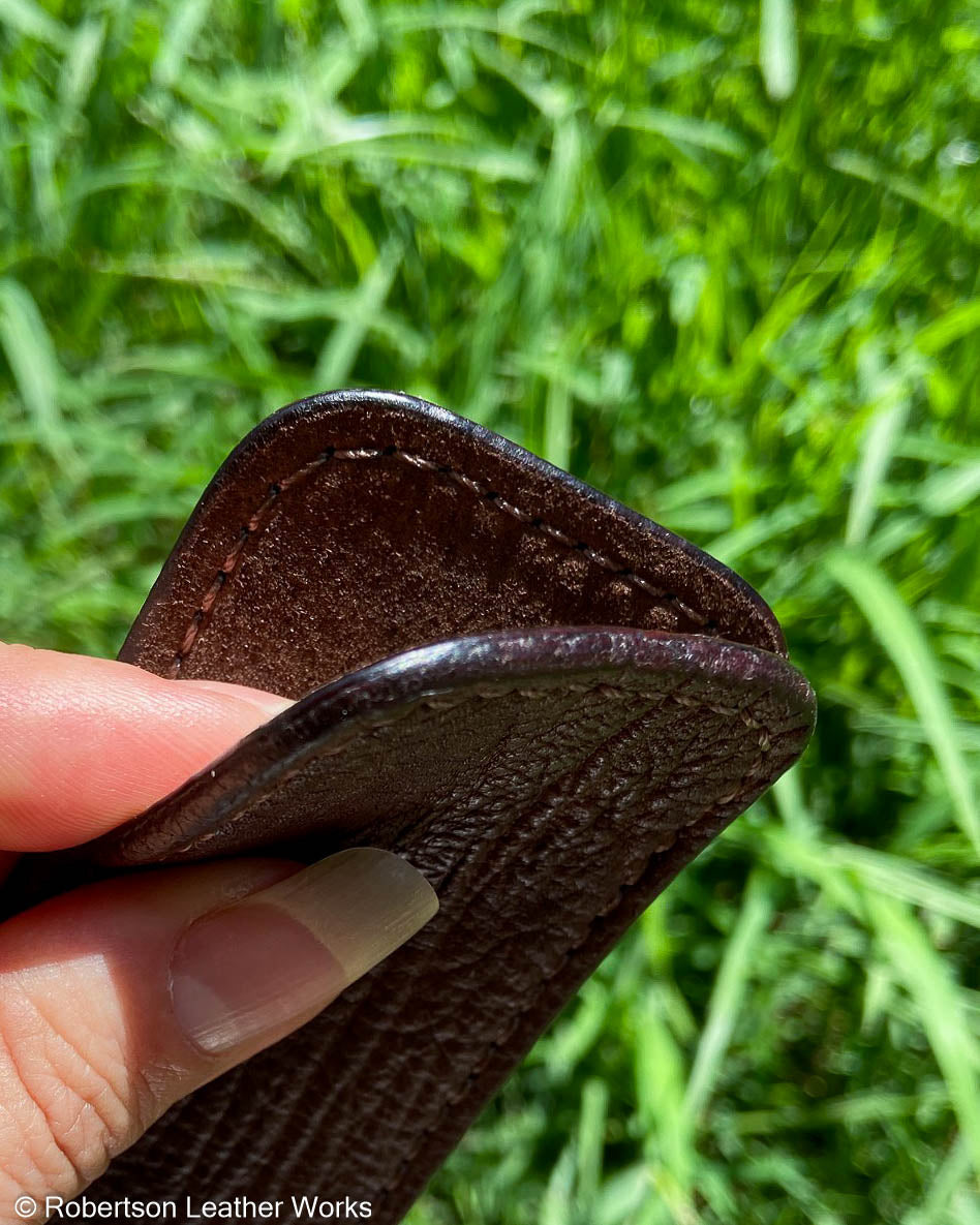 Small Rustic Brown Shark Leather Knife Slip, Brown Stitching