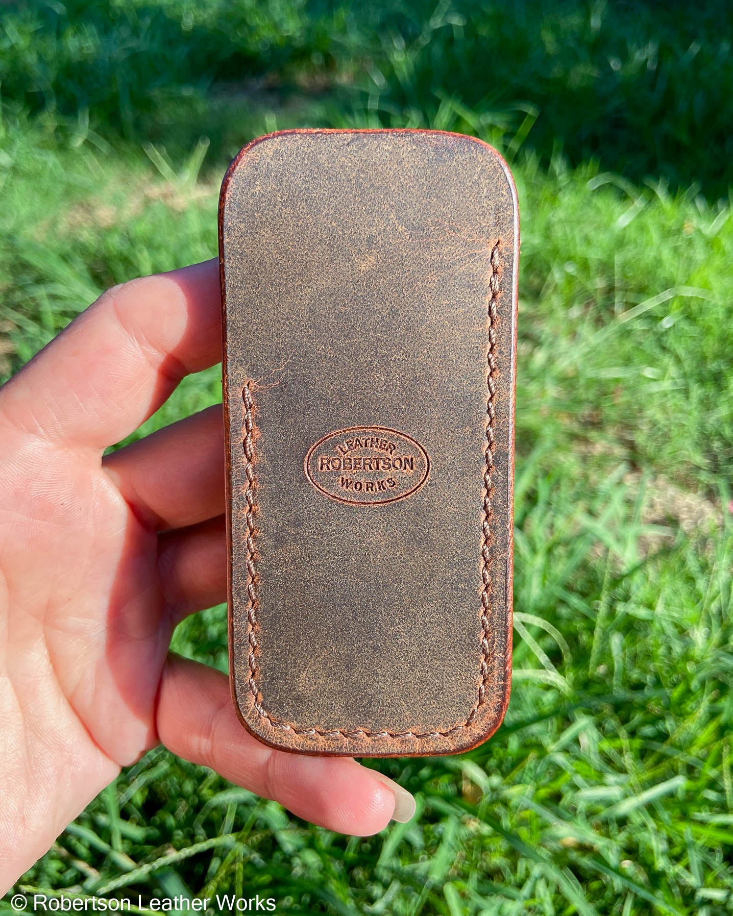 Small Rustic Brown Water Buffalo Leather Knife Slip, Brown Stitching