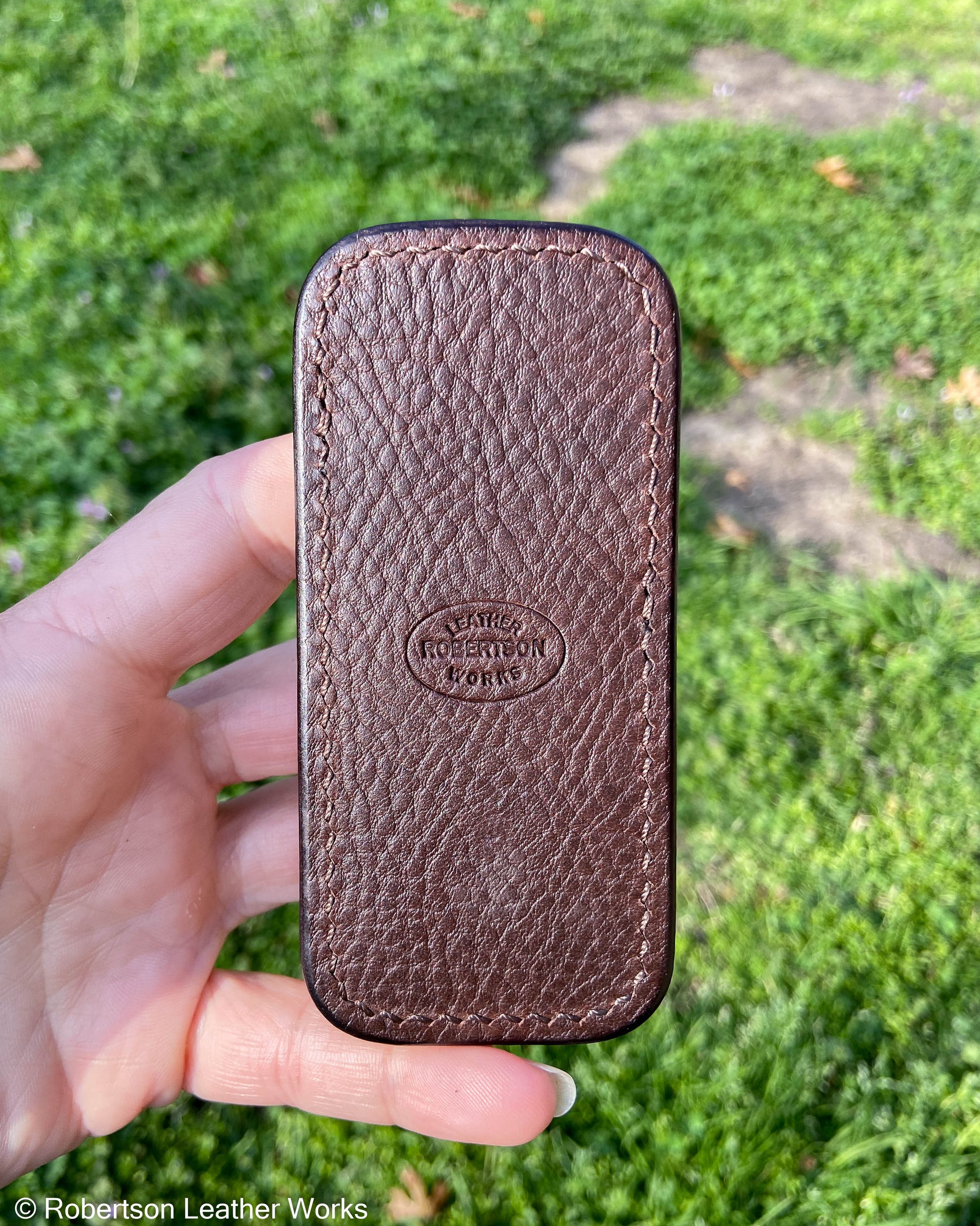 Small Vintage Nicotine Elephant Leather Knife Slip, Brown Stitching