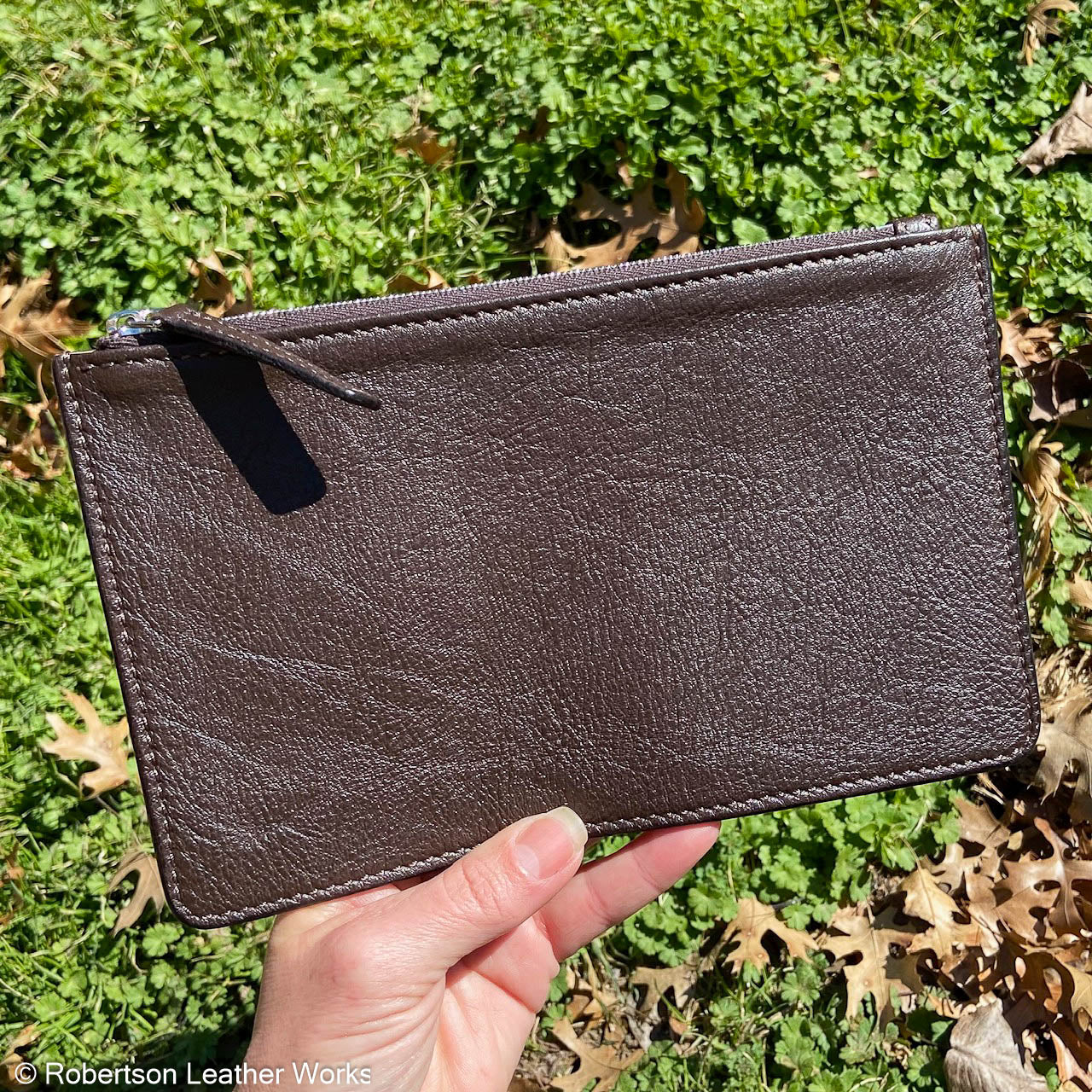 Zipper Pouch/ Cash Bag in Dark Brown Leather