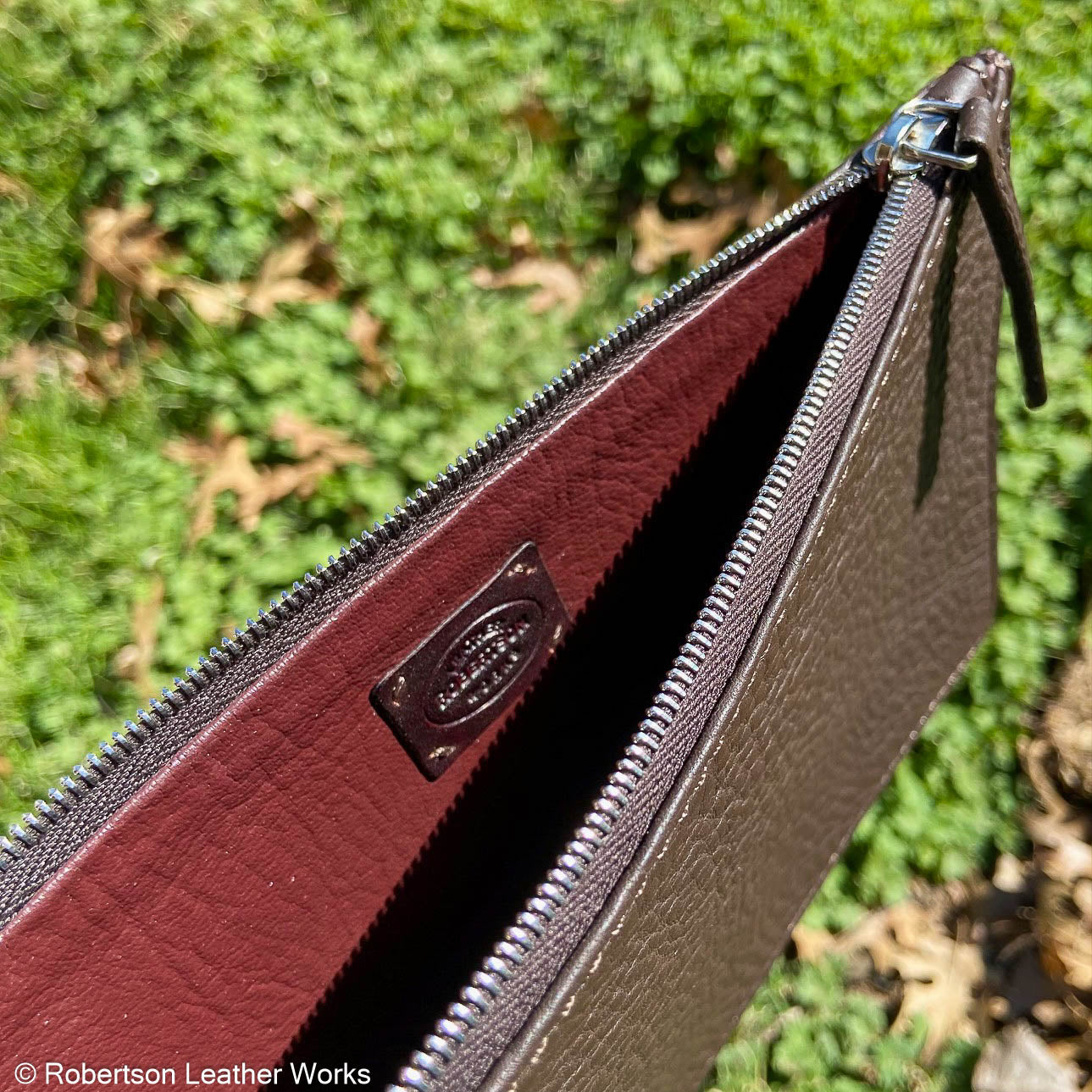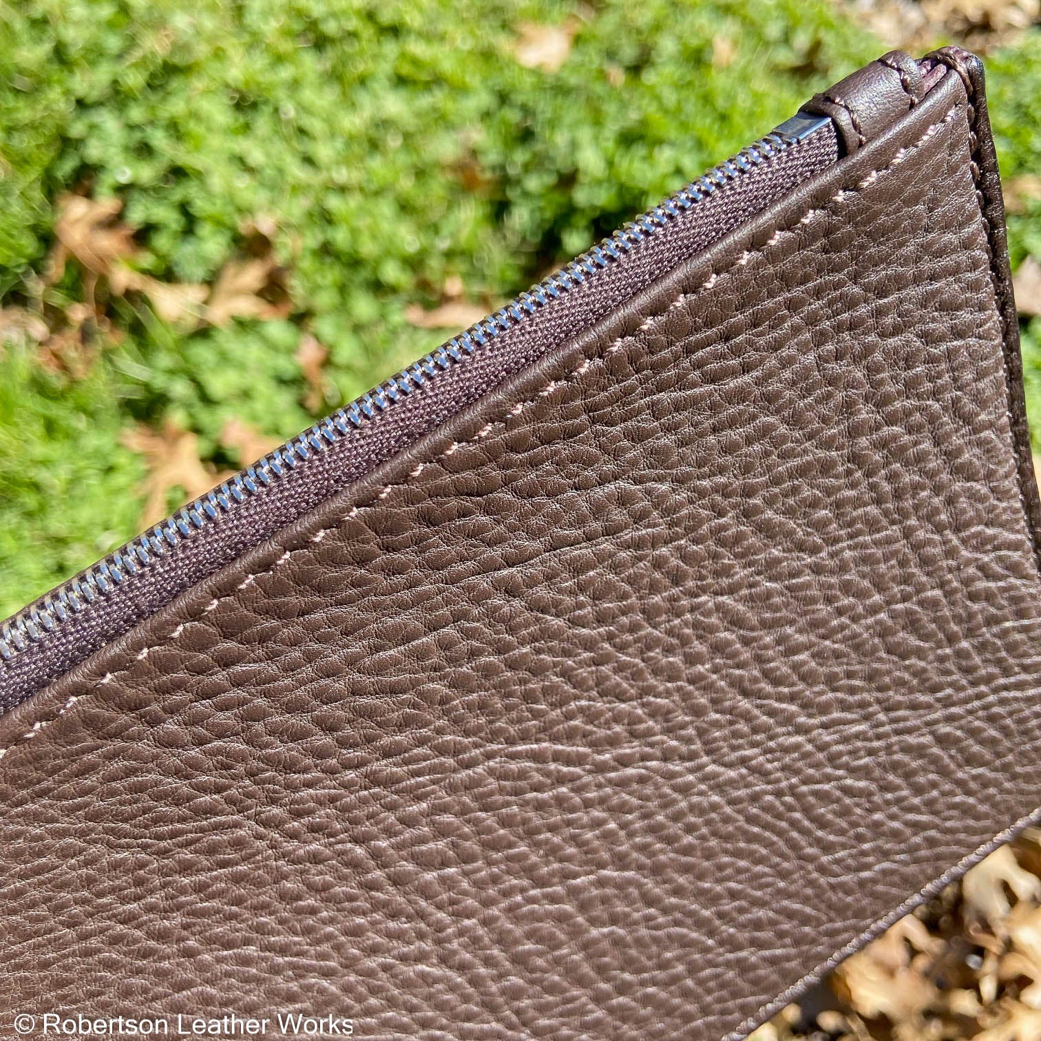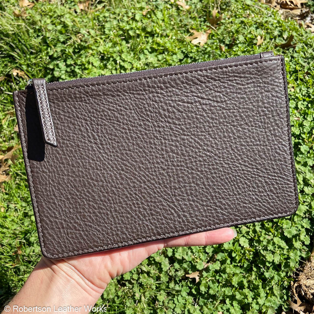 Zipper Pouch/ Cash Bag in Matte Brown Leather